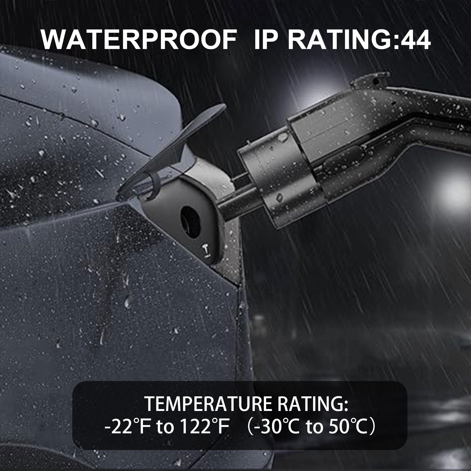 - 20,000+ times plug and play tested and 400%+ load pressure.Normal use in bad weather, working effectively in temperatures from -22°F to 122°F (-30°C to 50°C).IPX5 waterproof rating,making it suitable for snowing/raining day outdoor charging.
