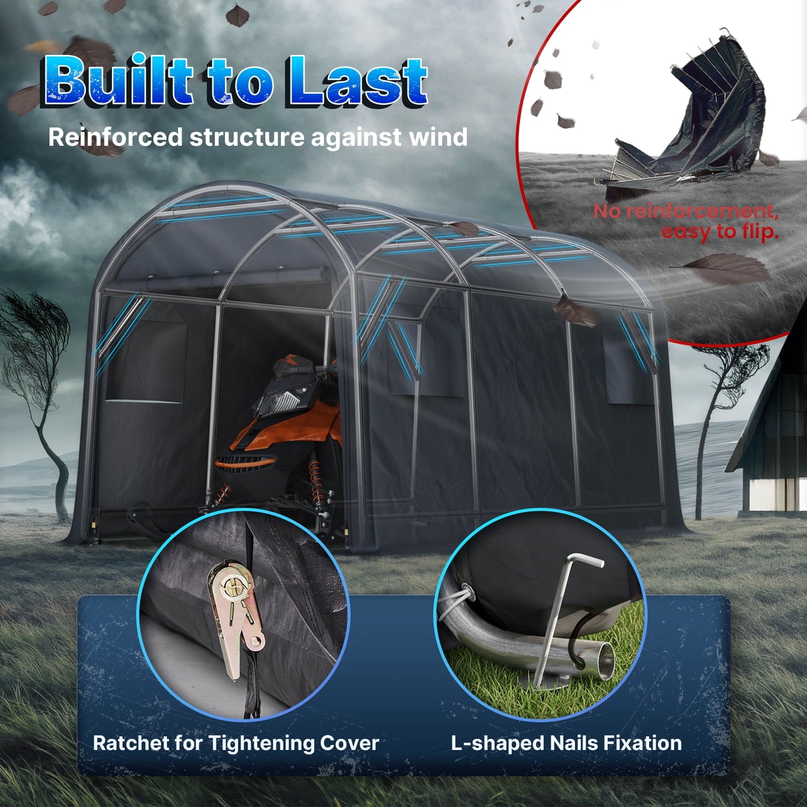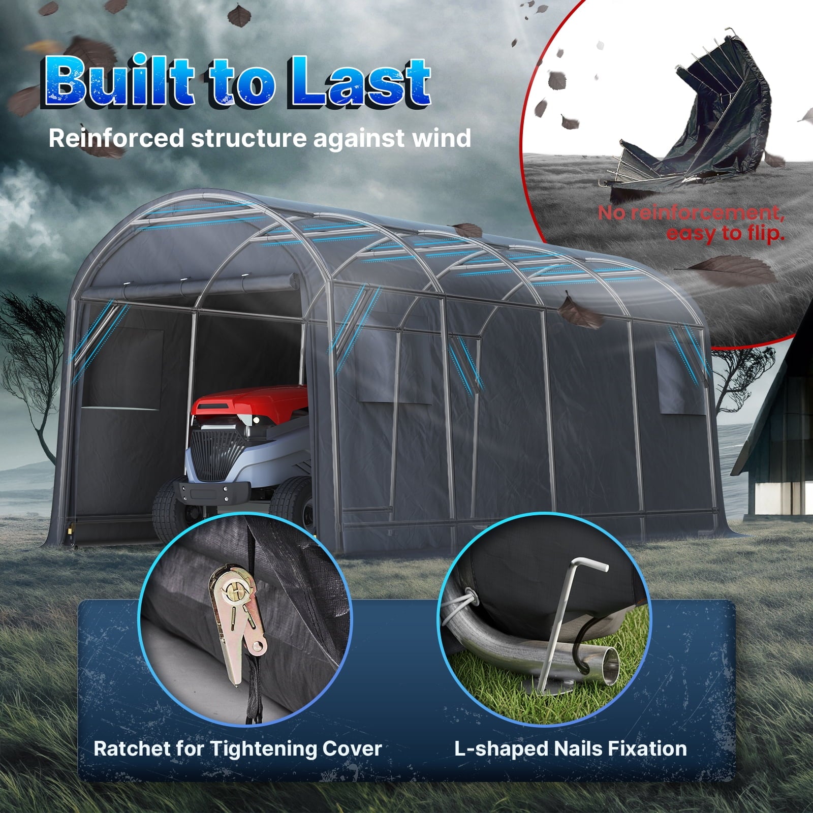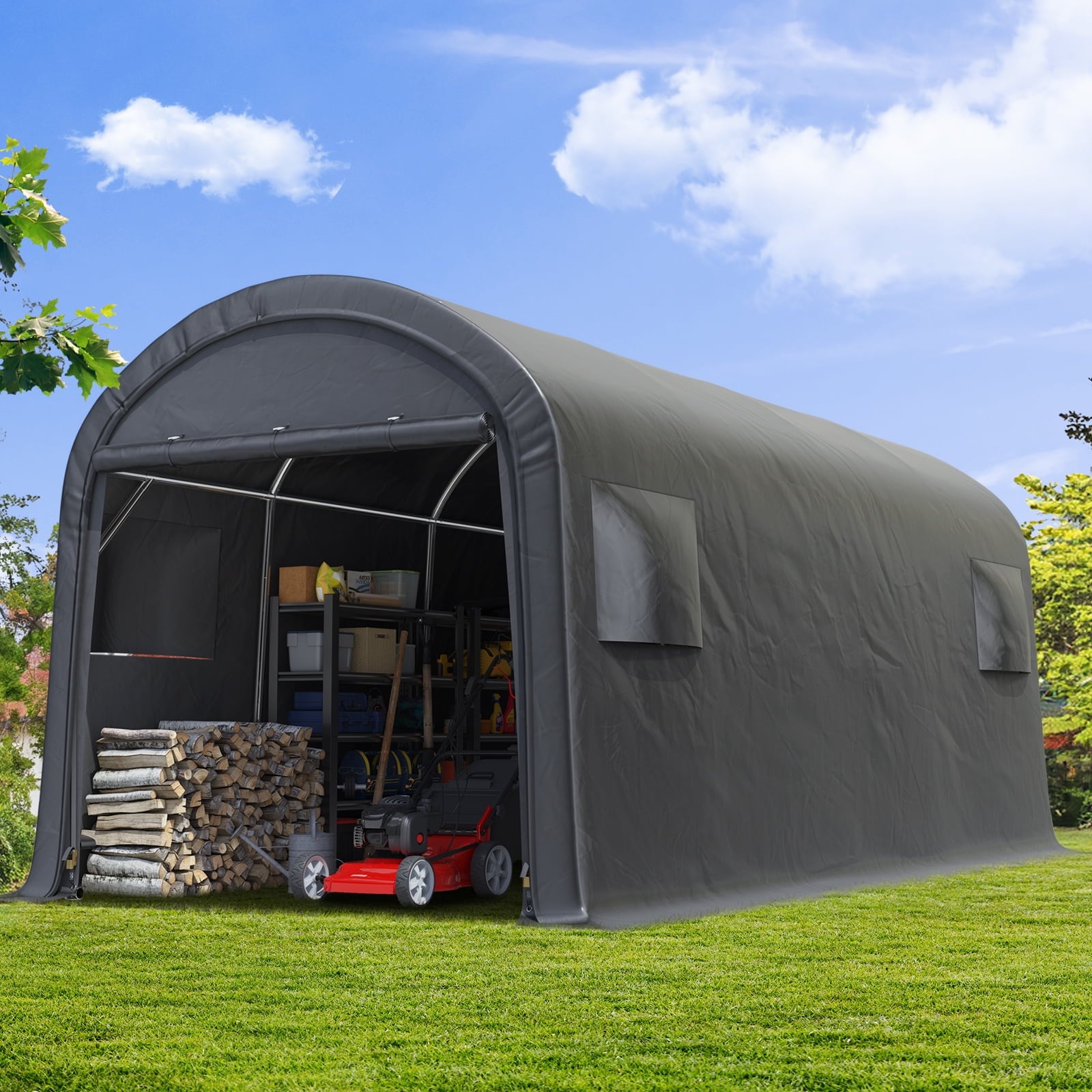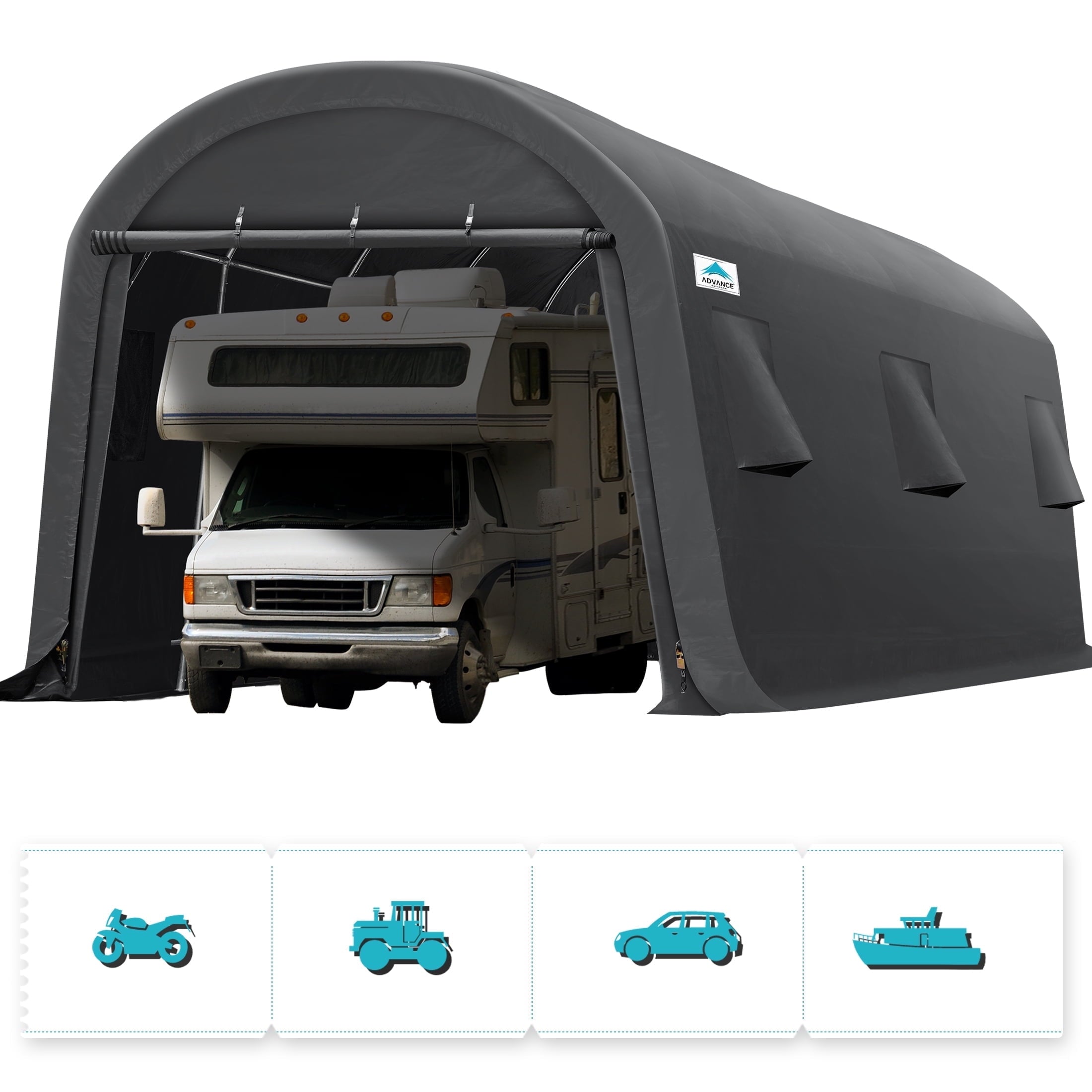 - ✅【Various Use】► The portable storage shelter can be a boat storage shelter, ATV storage shed, truck storage tent, vehicle garage shelter. It is also suitable for large machinery, firewood or any other gardening tools.