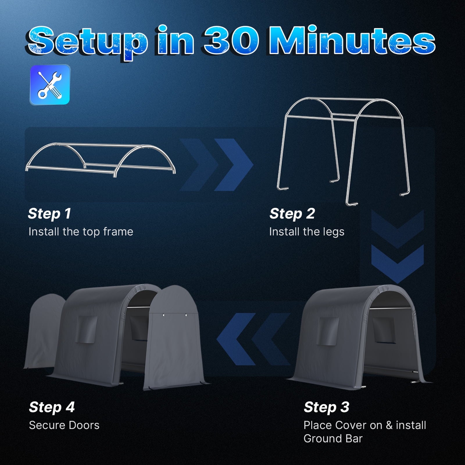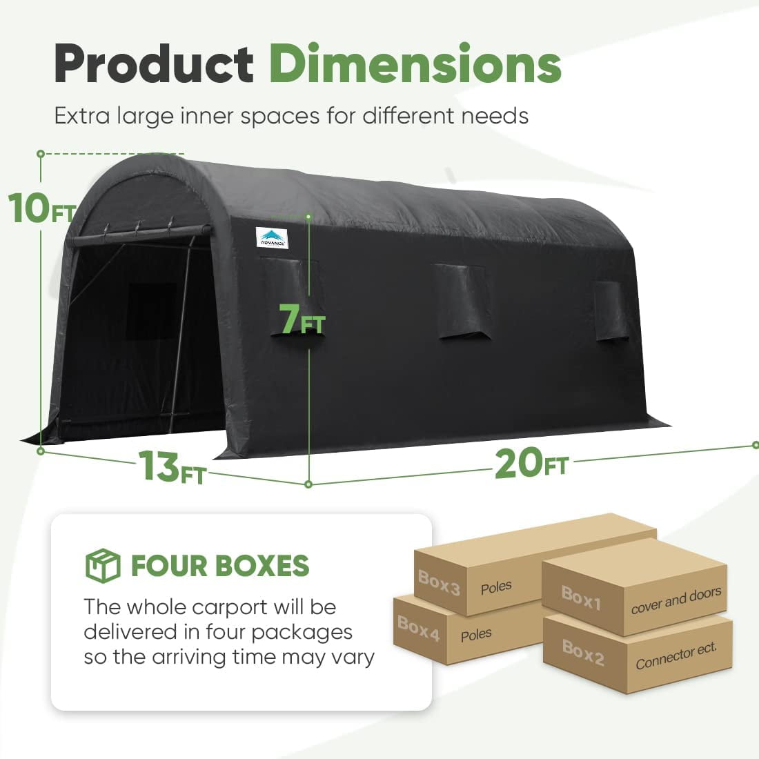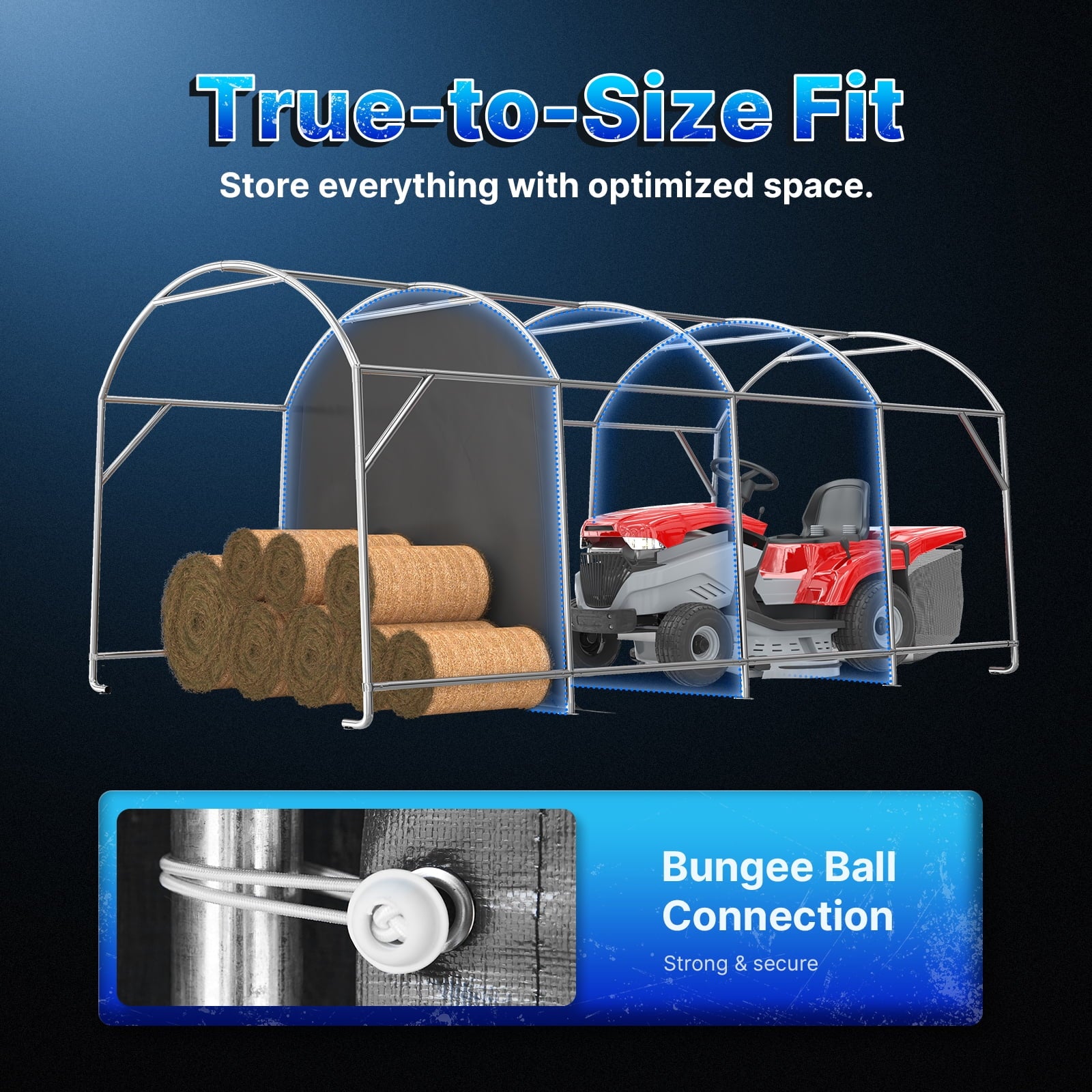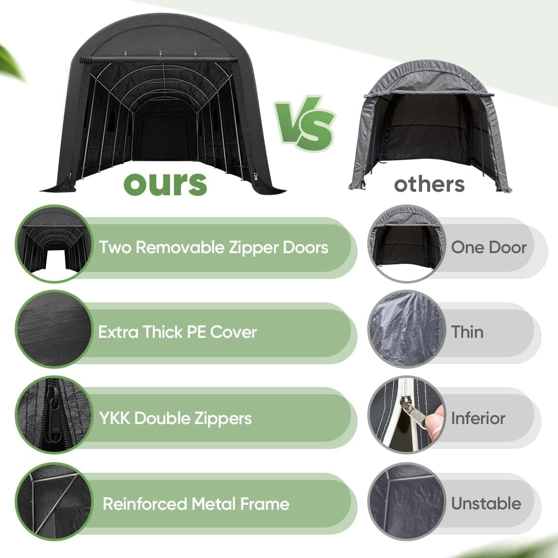 - ✅【Various Use】► The portable storage shelter can be a boat storage shelter, ATV storage shed, truck storage tent, vehicle garage shelter. It is also suitable for large machinery, firewood or any other gardening tools.