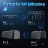 - ✅【Heavy Duty Durable Frame】► 1-1/2-inch diameter steel poles provide stability and strength to make the storage shelter carport safer. The garage storage tent is equipped with 12 upgraded 0.32X11.81 inch (8X300mm) L-Type pegs, thickened and enlarged to increase stability.