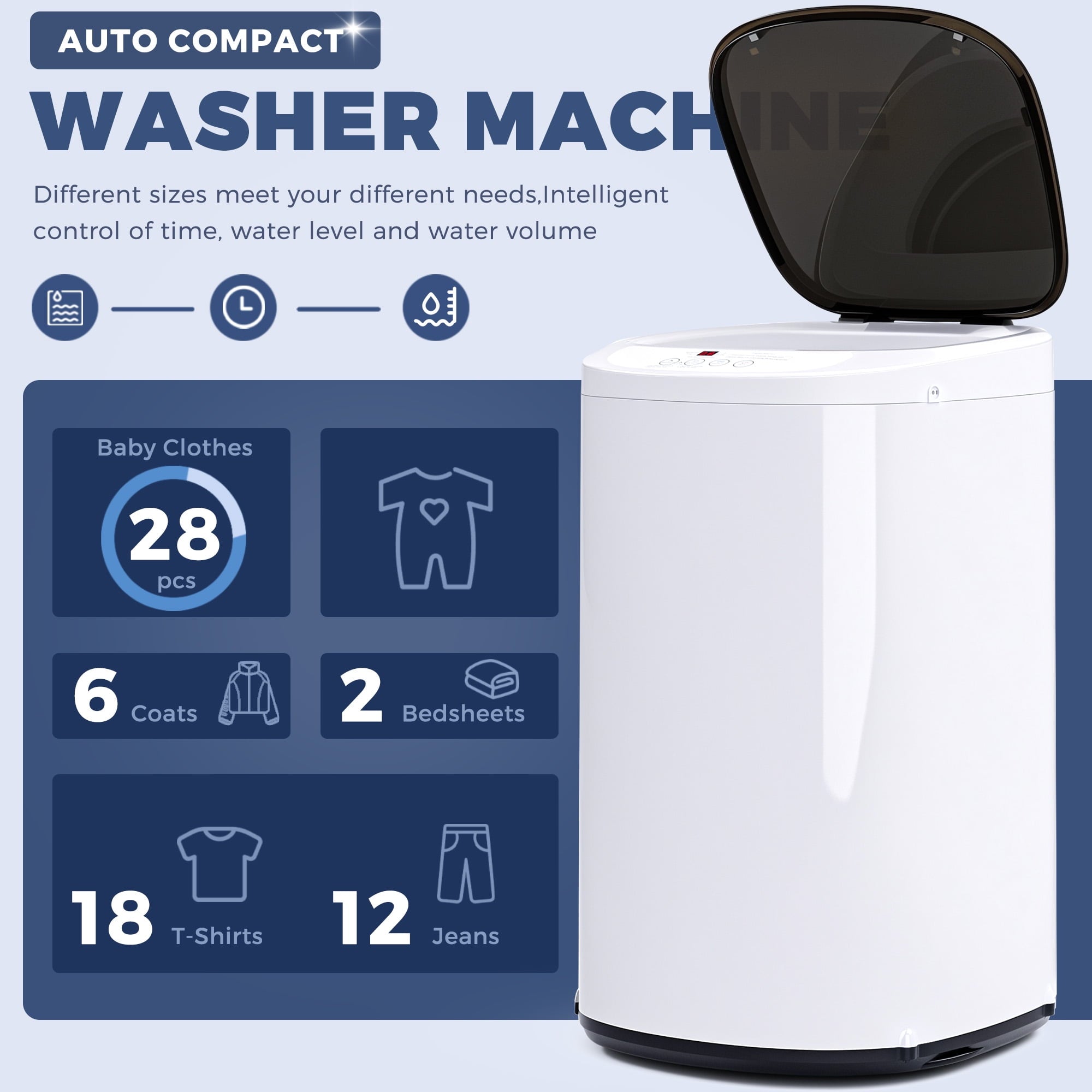 - Compact but Large Capacity – 1.07 Cu.ft washer holds up to 7.7 lbs, ideal for apartments, dorms & RVs.