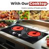- 【Drop-in Electric Cooktop & Countertop】You can use the electric ceramic hob on the countertop or use it built into the countertop. With black smooth glass surface, the glass is made of high quality material, which is strong, heat-resistant, scratch-resistant and easy to clean.