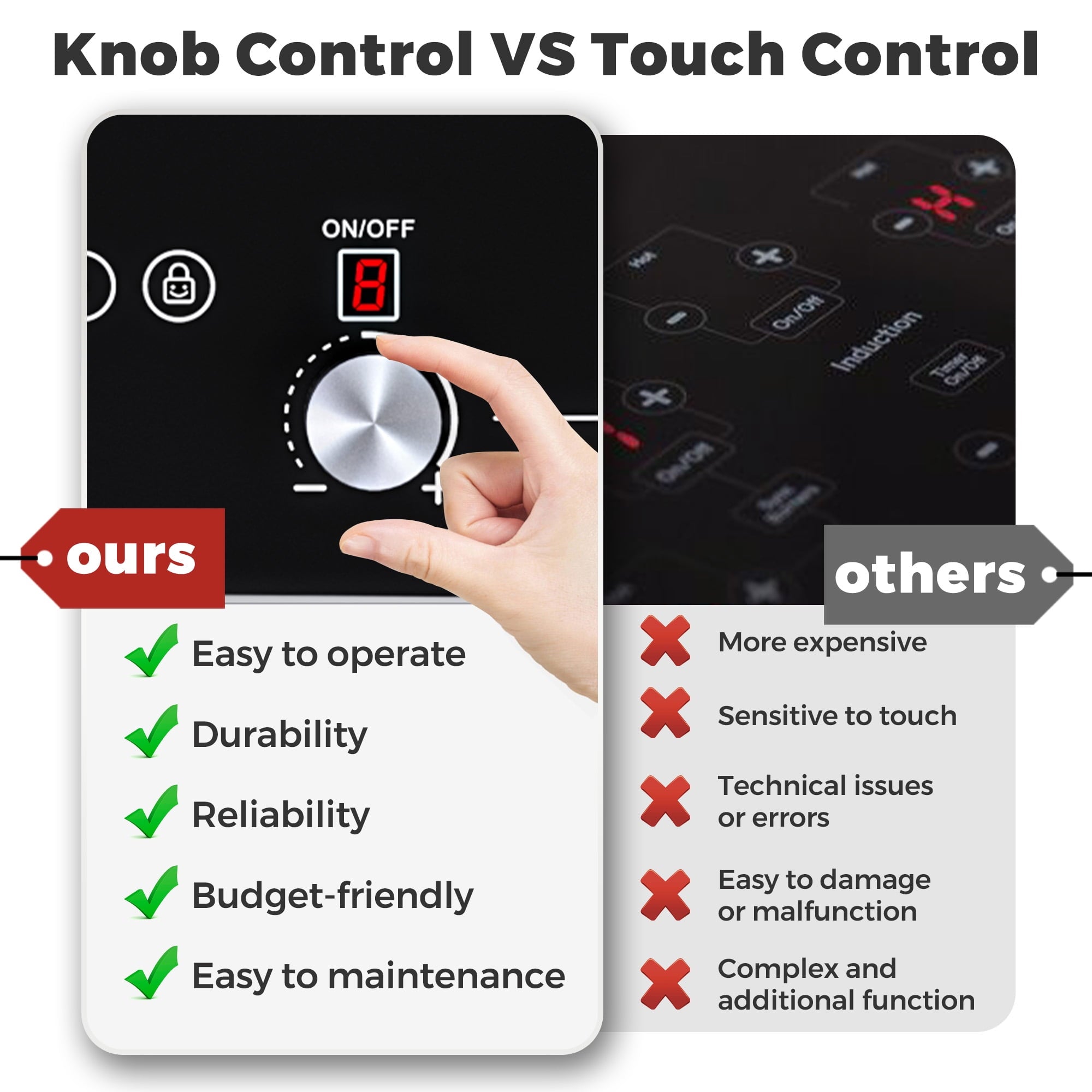 - 【Multifunctional Electric Cooktop】Knob control electric cooktop with more intimate features: 99-minute timer, child lock, high temperature warning, overheat protection. Not only suitable for the elderly and people with poor eyesight, it also prevents children or family pets, cats from accidentally touching the on/off button, which is safer than touch screen buttons.