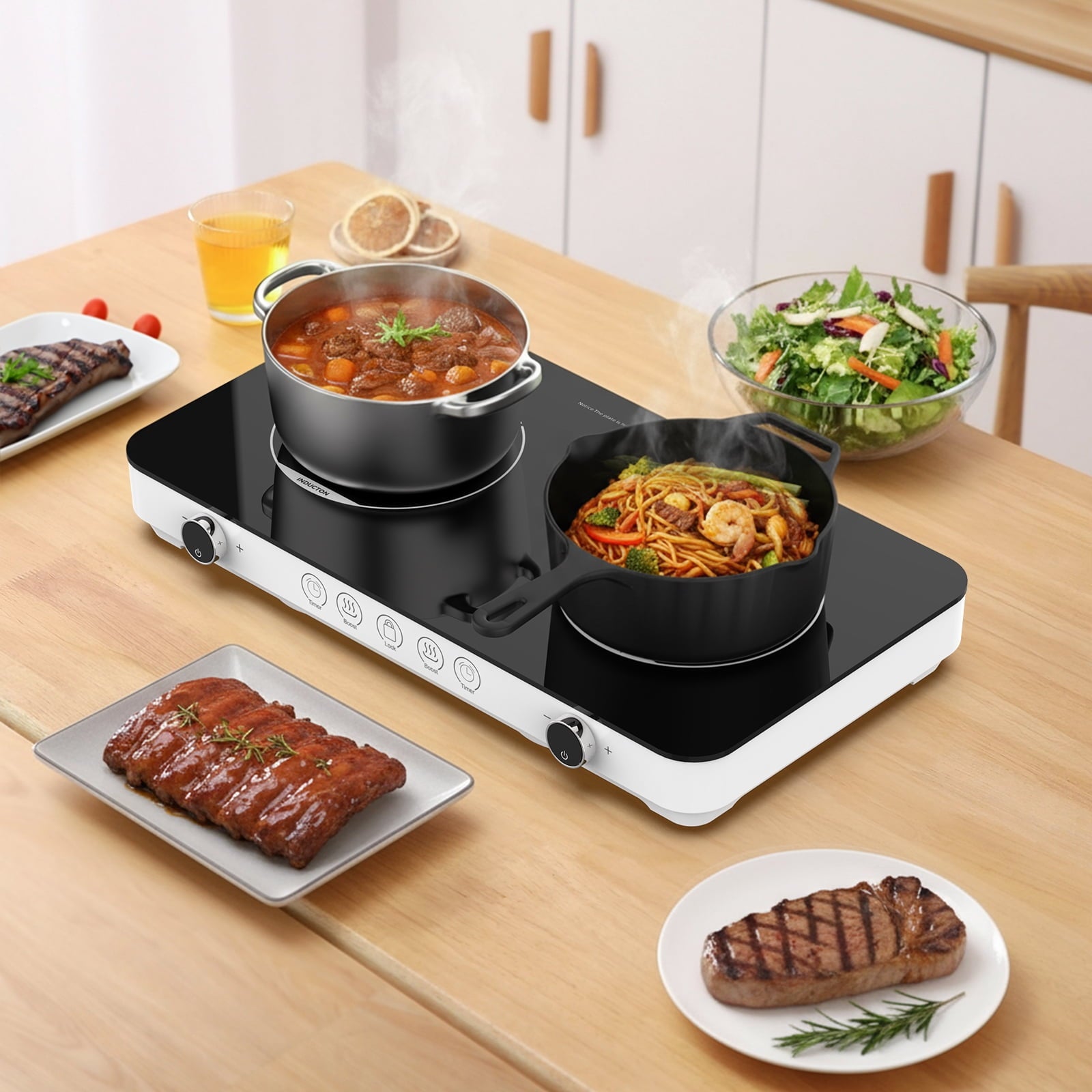 - Powerful 1800W Cooking Performance:This double induction cooktop delivers fast and even heating. It supports multiple cooking methods such as boiling, frying, steaming, and simmering, making it versatile for everyday meals.