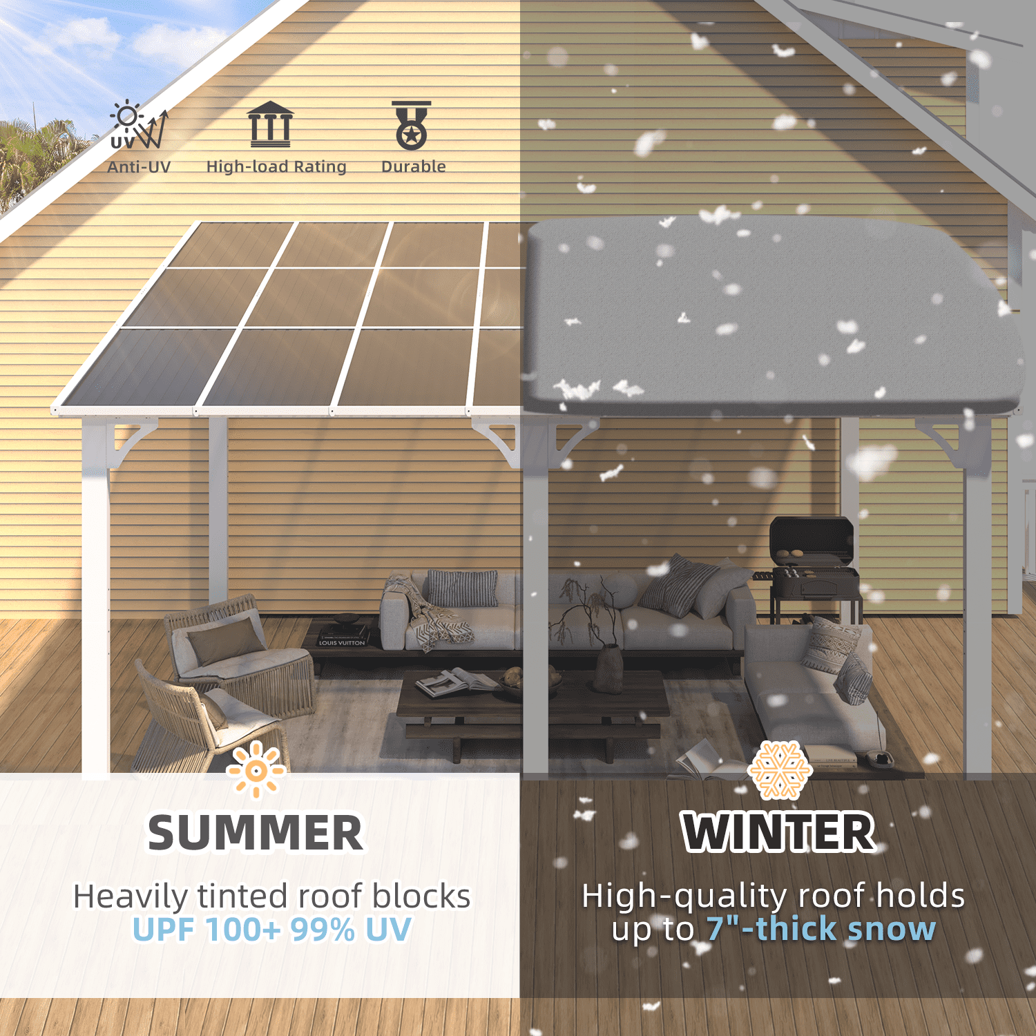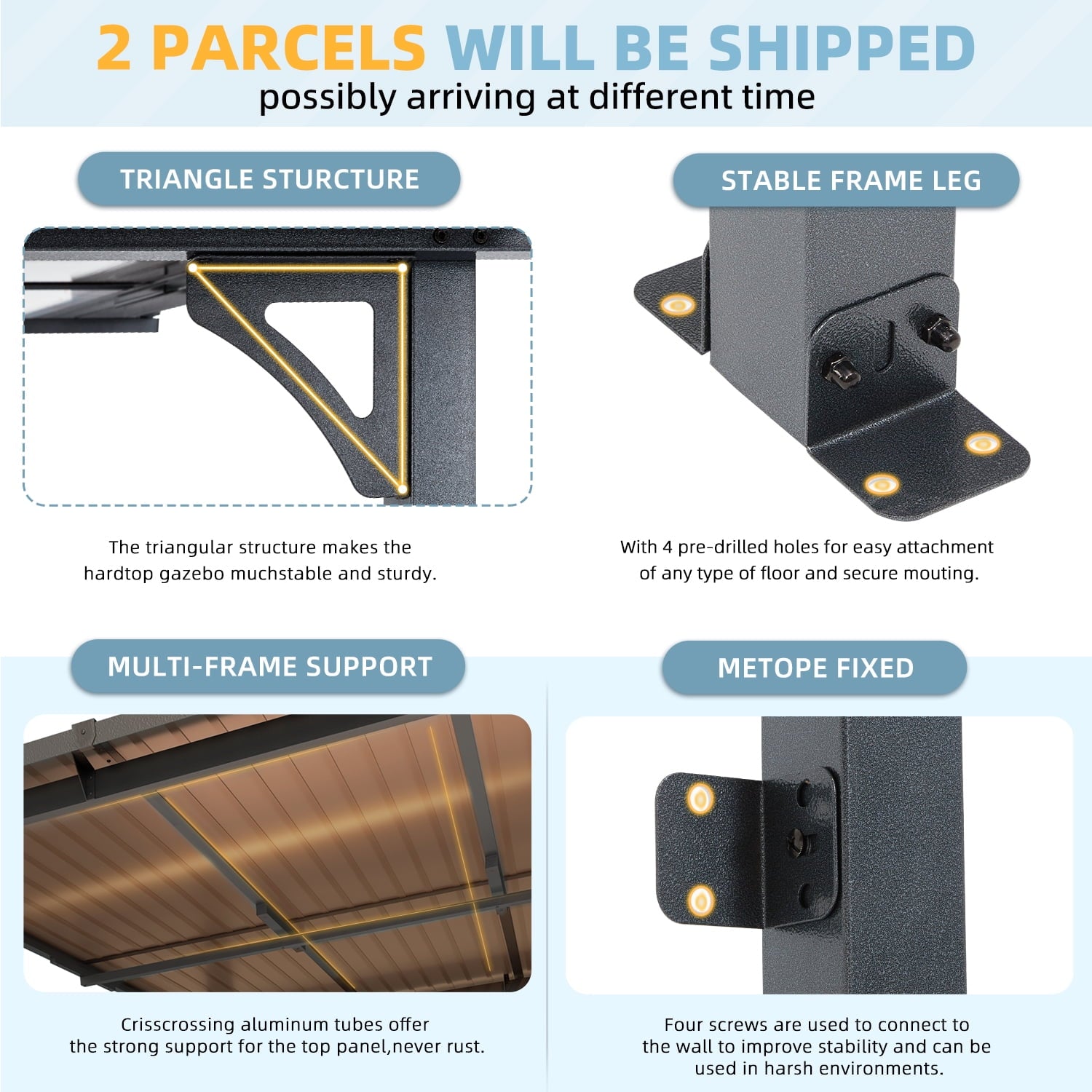 To make the great outdoors even greater, at AECOJOY, we can provide you with durable, stylish and comfy outdoor furniture that can stand the test of time. If you want to create a wonderful and comfortable outdoor recreation area, this outdoor hardtop pergola would be a great choice. You’ll find it can elevates your exterior living space to the extraordinary. Sturdy outdoor hardtop gazebo built with triangular powder-coated aluminum frame, which is more stable and durable. AECOJOY makes your outdoor leisure time unforgettable.