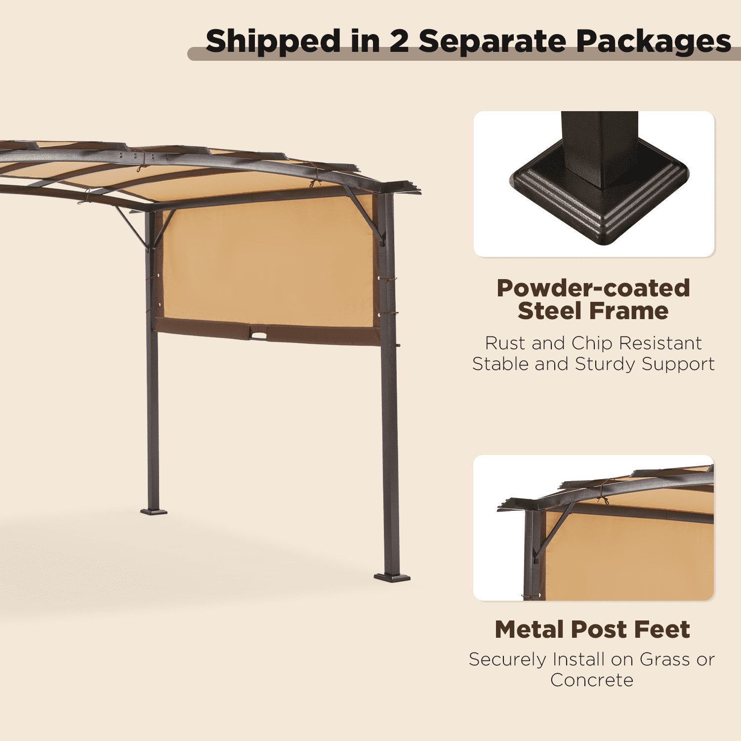 - Material AlloySteelFrame,Polyester PergolaCanopy