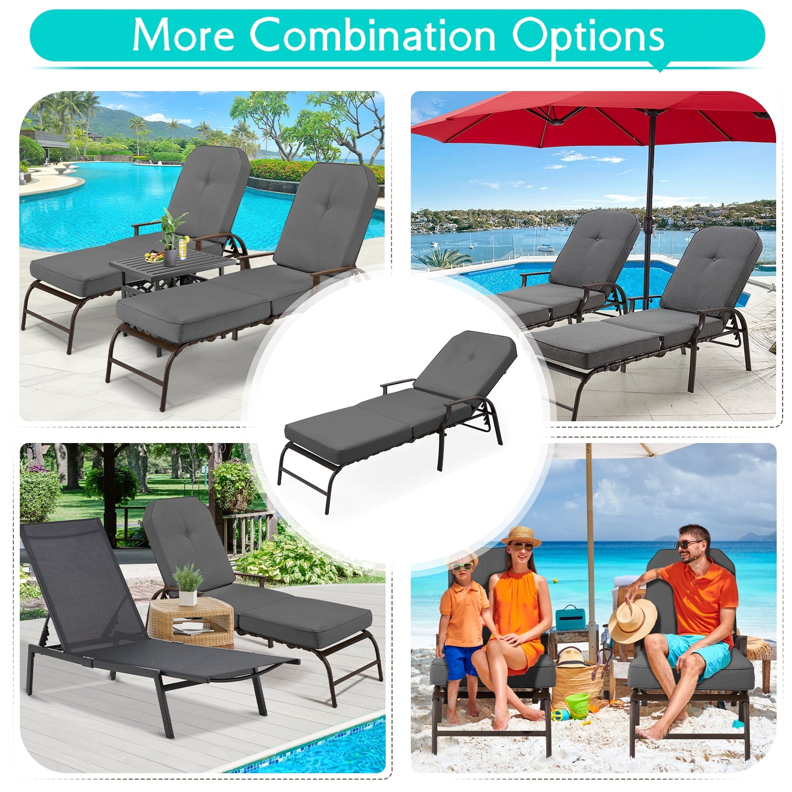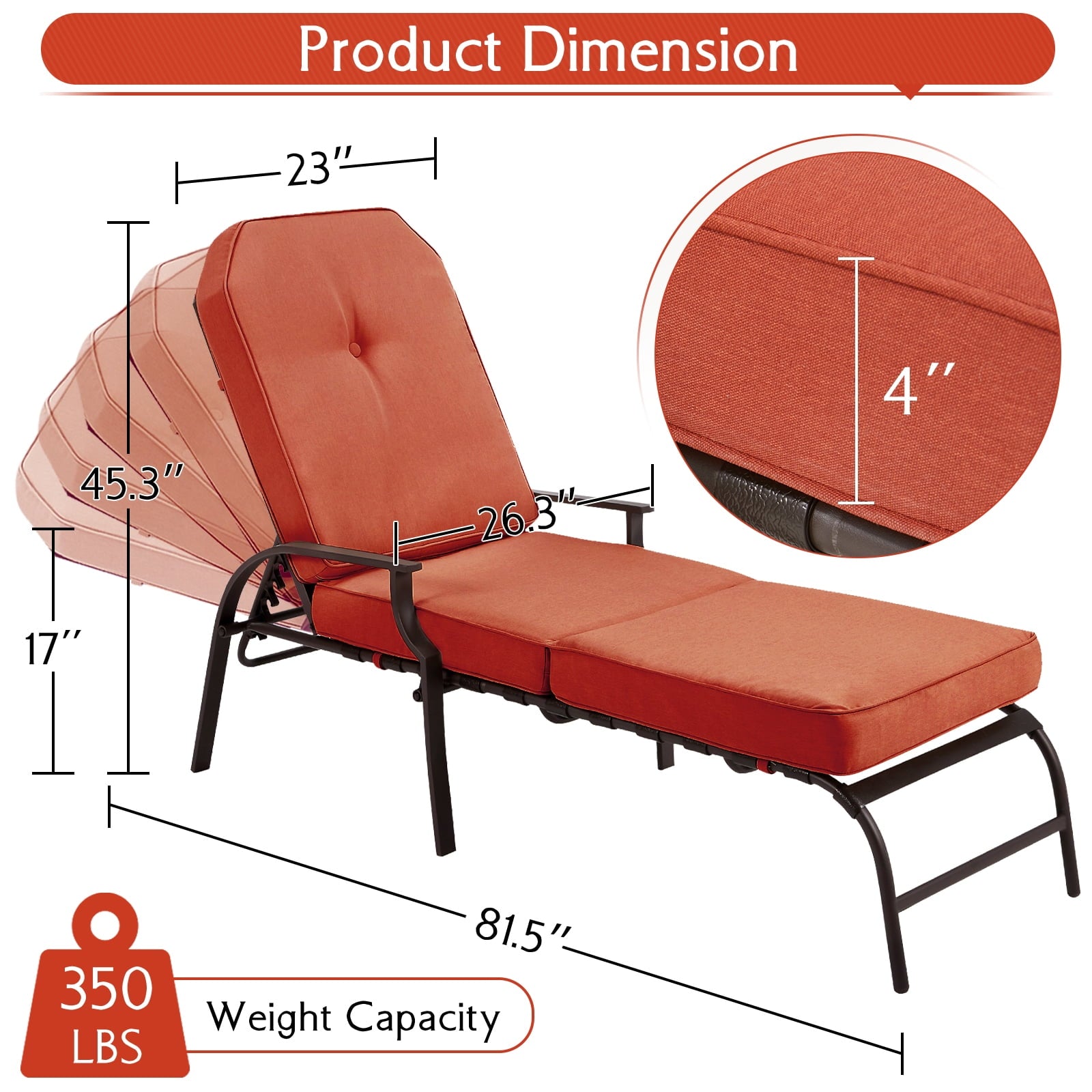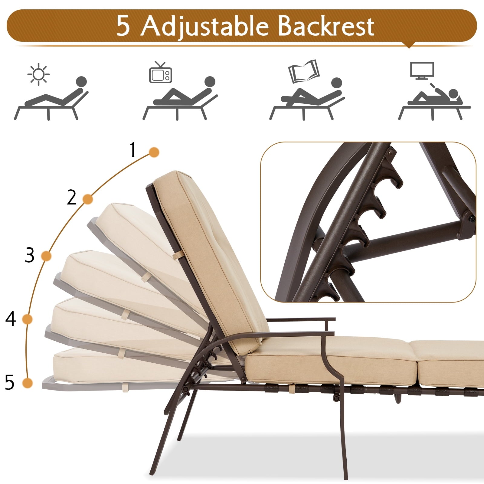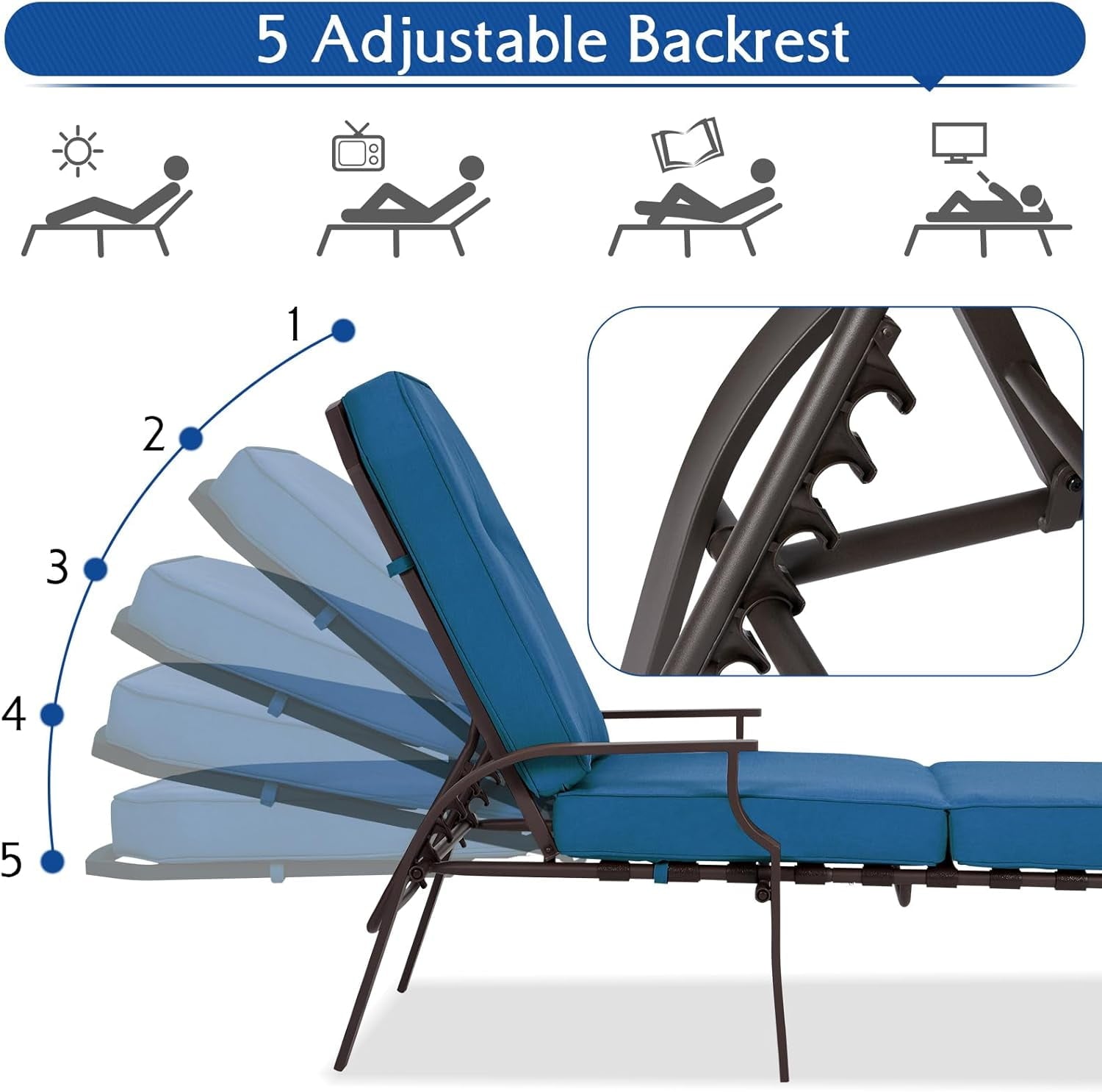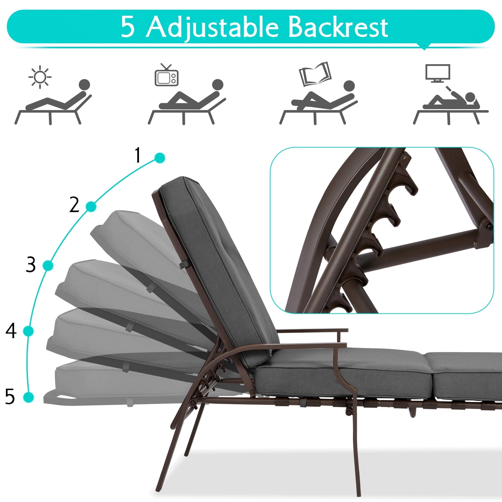 • 【5 Adjustable Reclining Positions】:The backrest of this chaise lounge chair can be changed in 5 positions to follow your multiple needs.