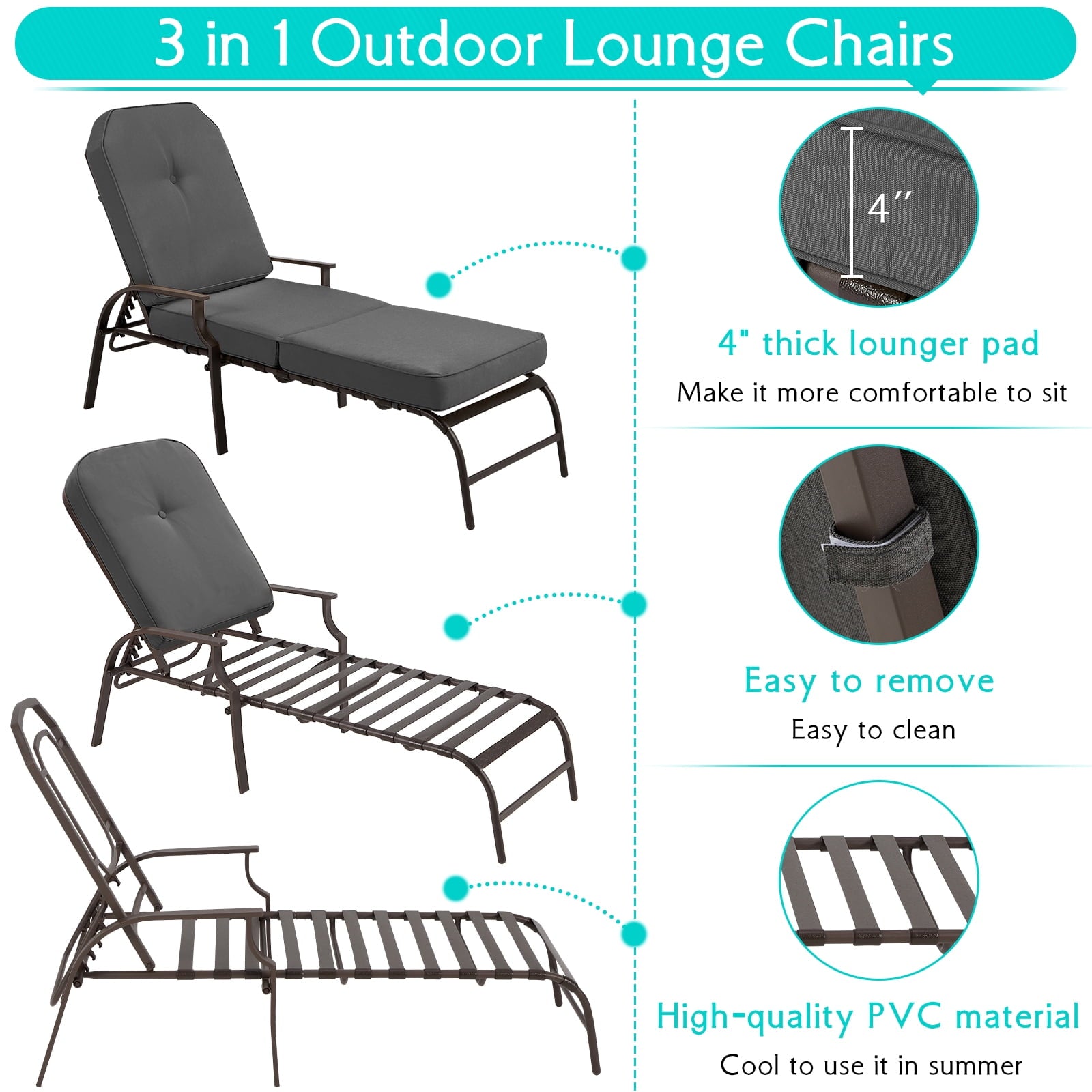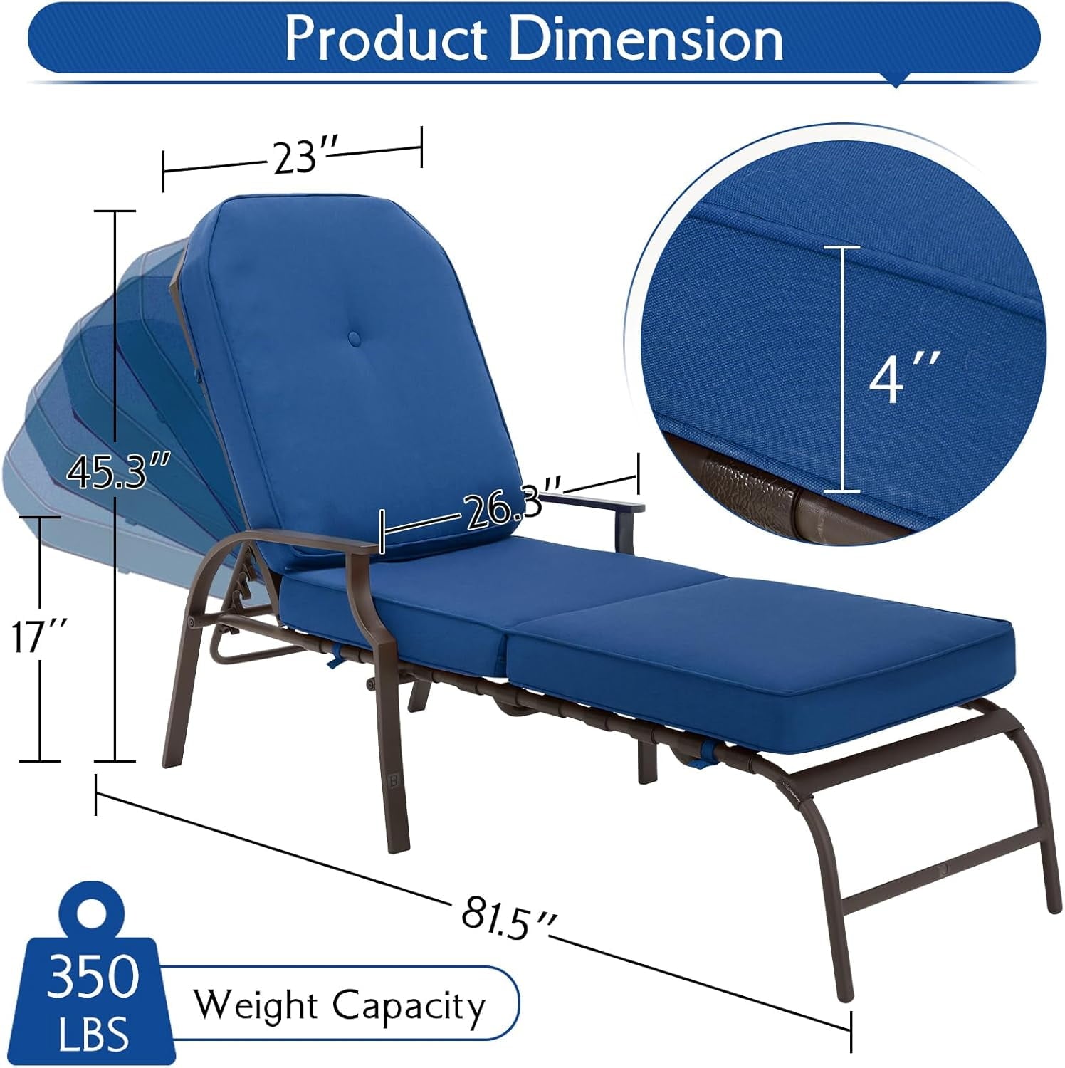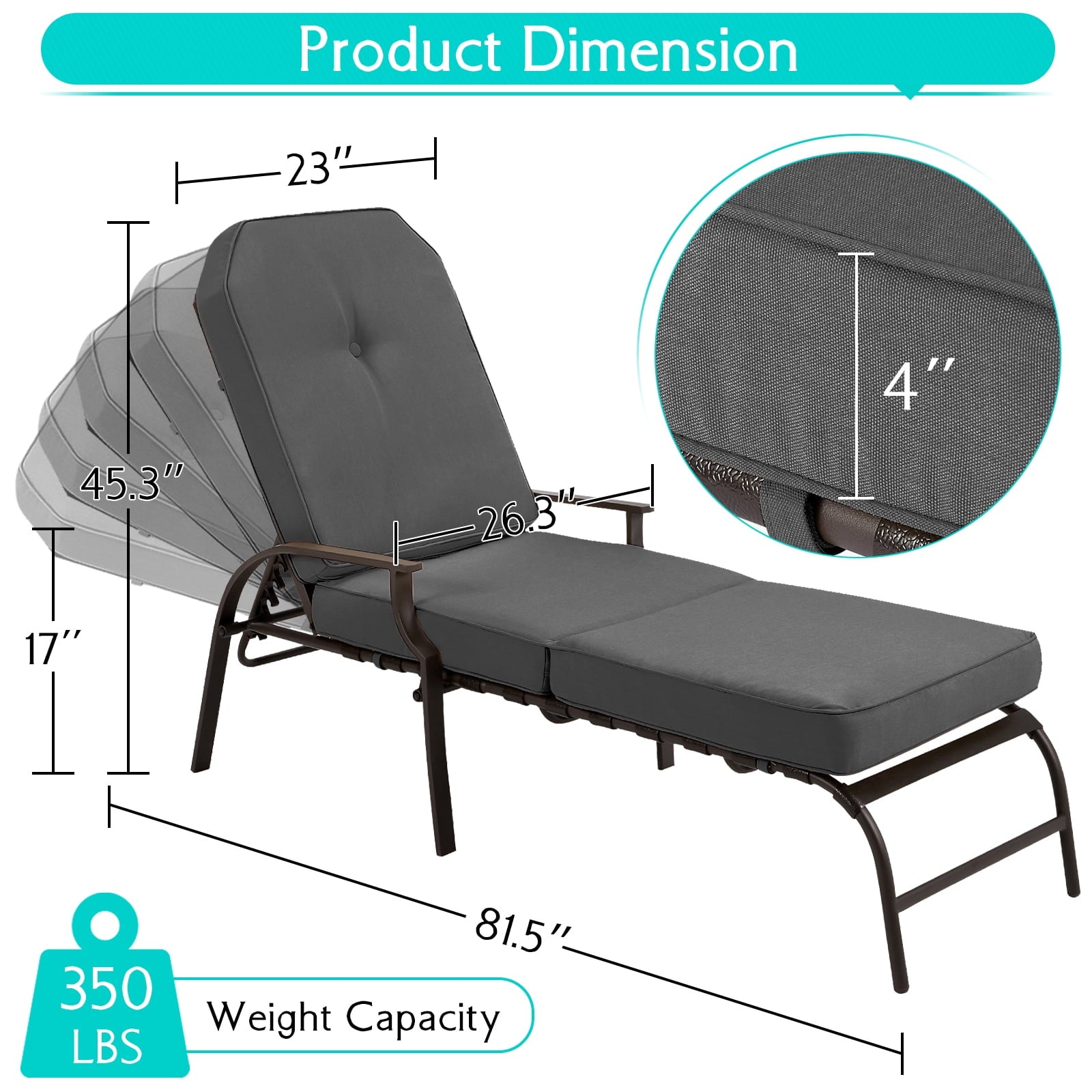 • 【Sturdy & Weather Resistant】: Our patio lounge chair constructed of durable & Waterproof steel frame which will hold up to 250lbs, suitable for both indoor and outdoor use.