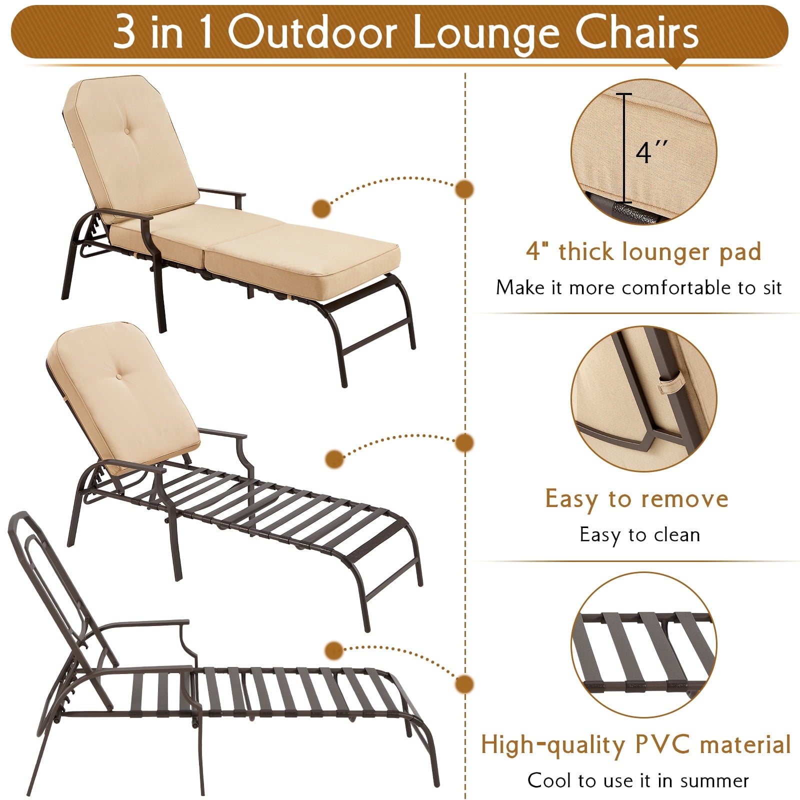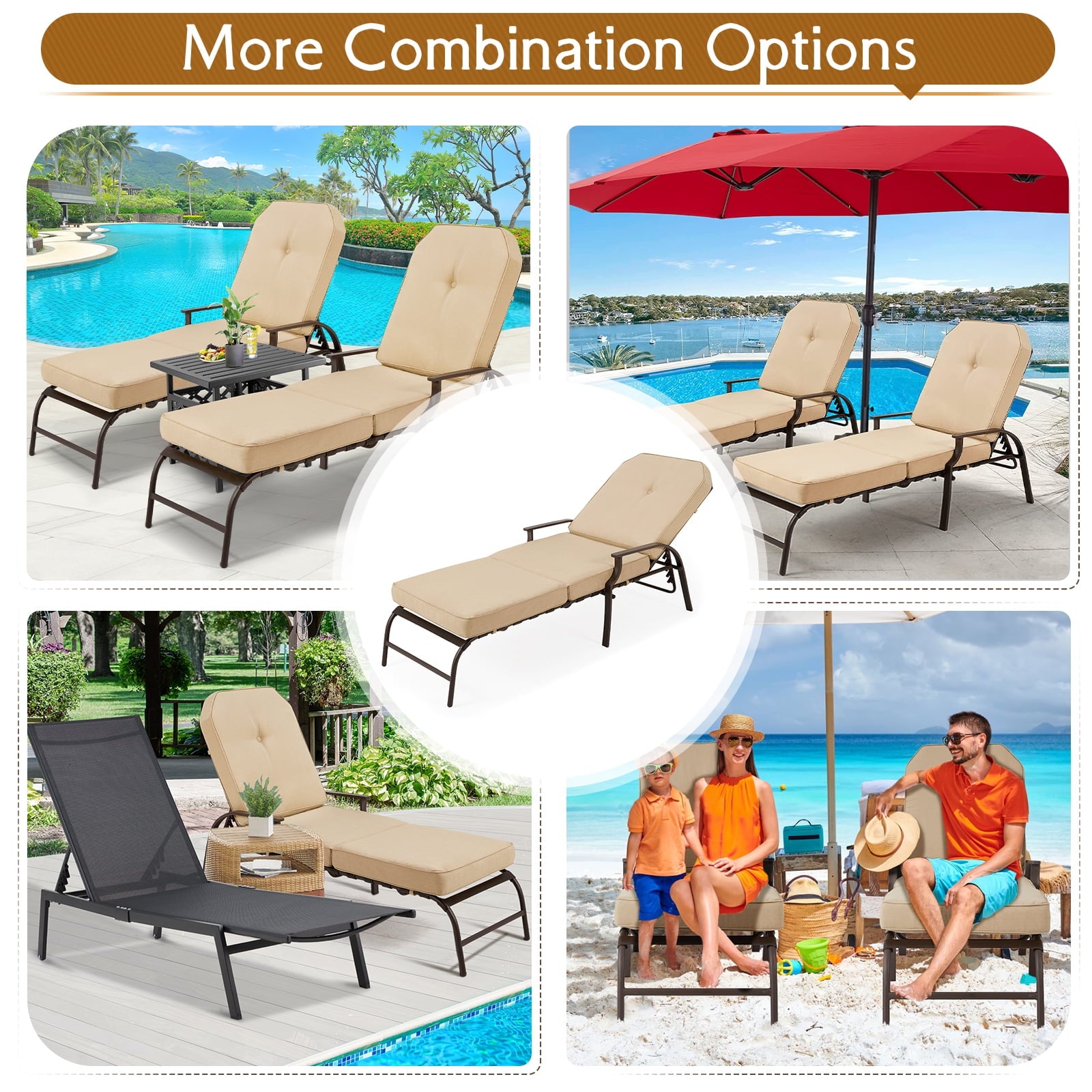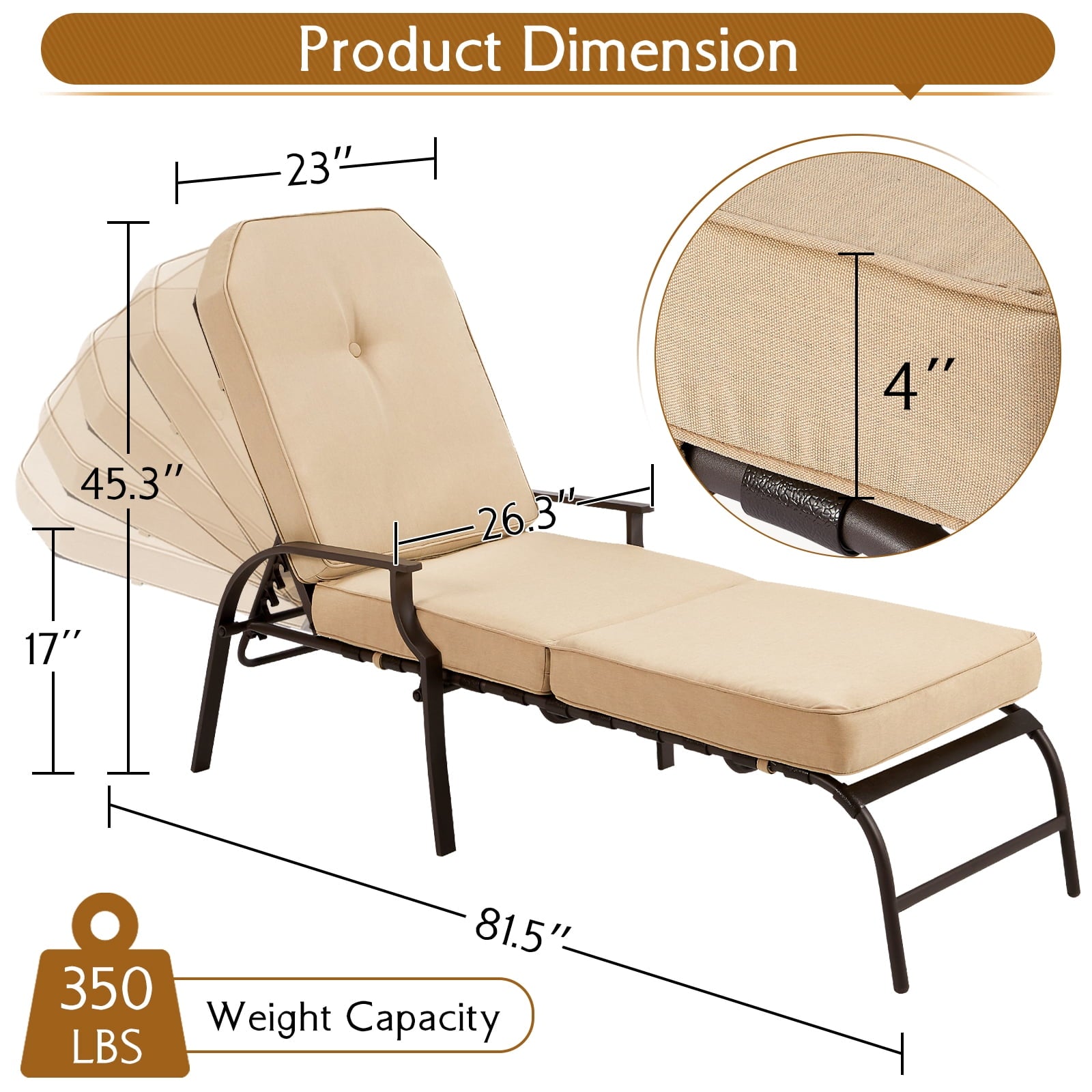 AECOJOY Adjustable Outdoor Chaise Lounge Chair for Patio, Poolside with UV-Resistant Cushion - Beige