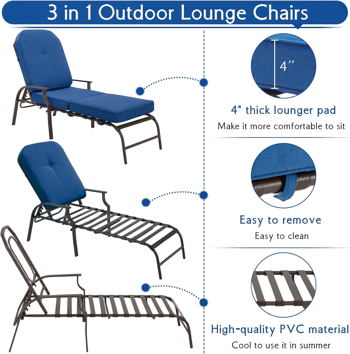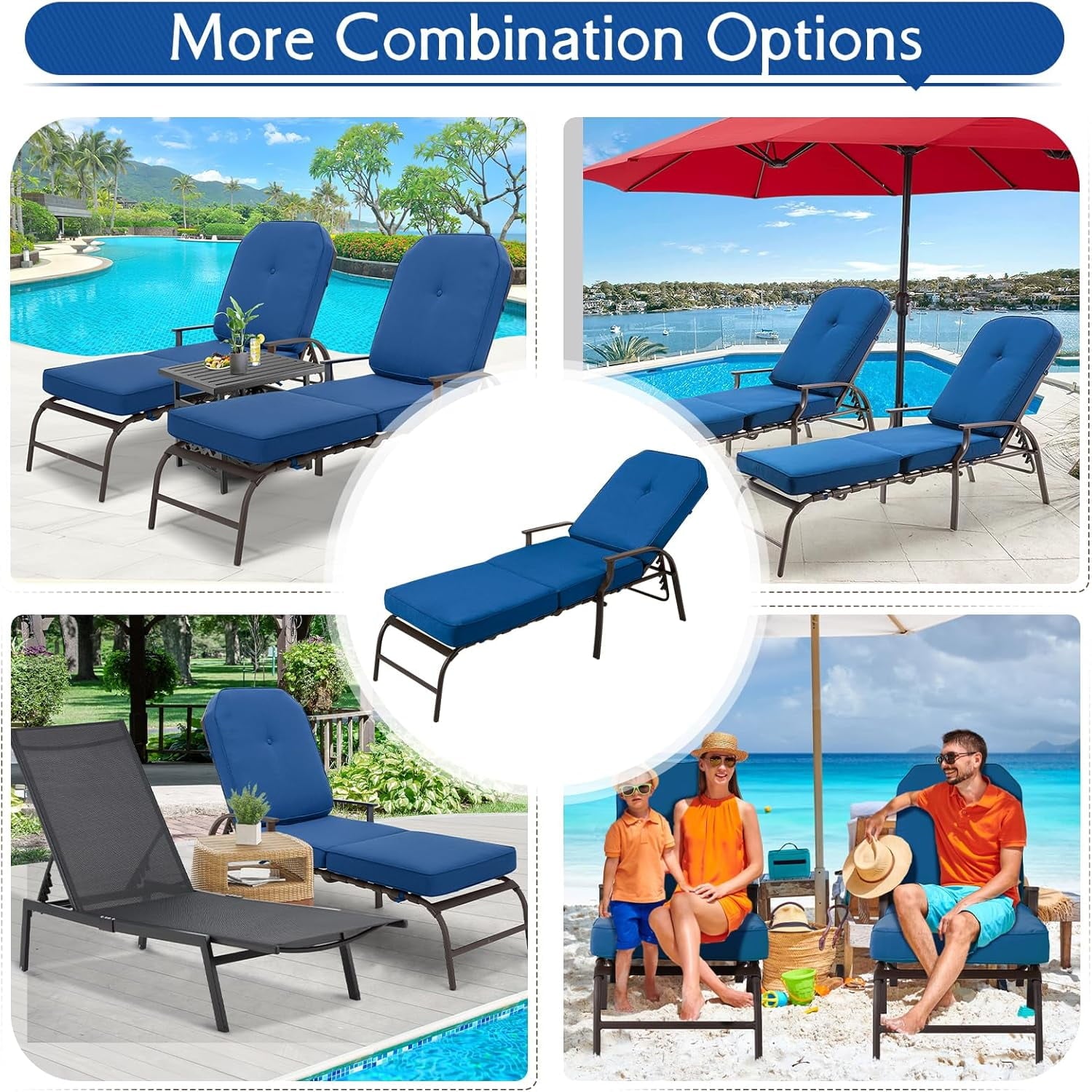 • 【Thicken & Splash Proof】: Steel lounge chair comes with 4″ thicken padded cushion that will provide you a super comfort, and olefin fabric brings better splashproof ability that also easy to clean with wipe . The velcro will help cushion fix the chair frame without slipping.