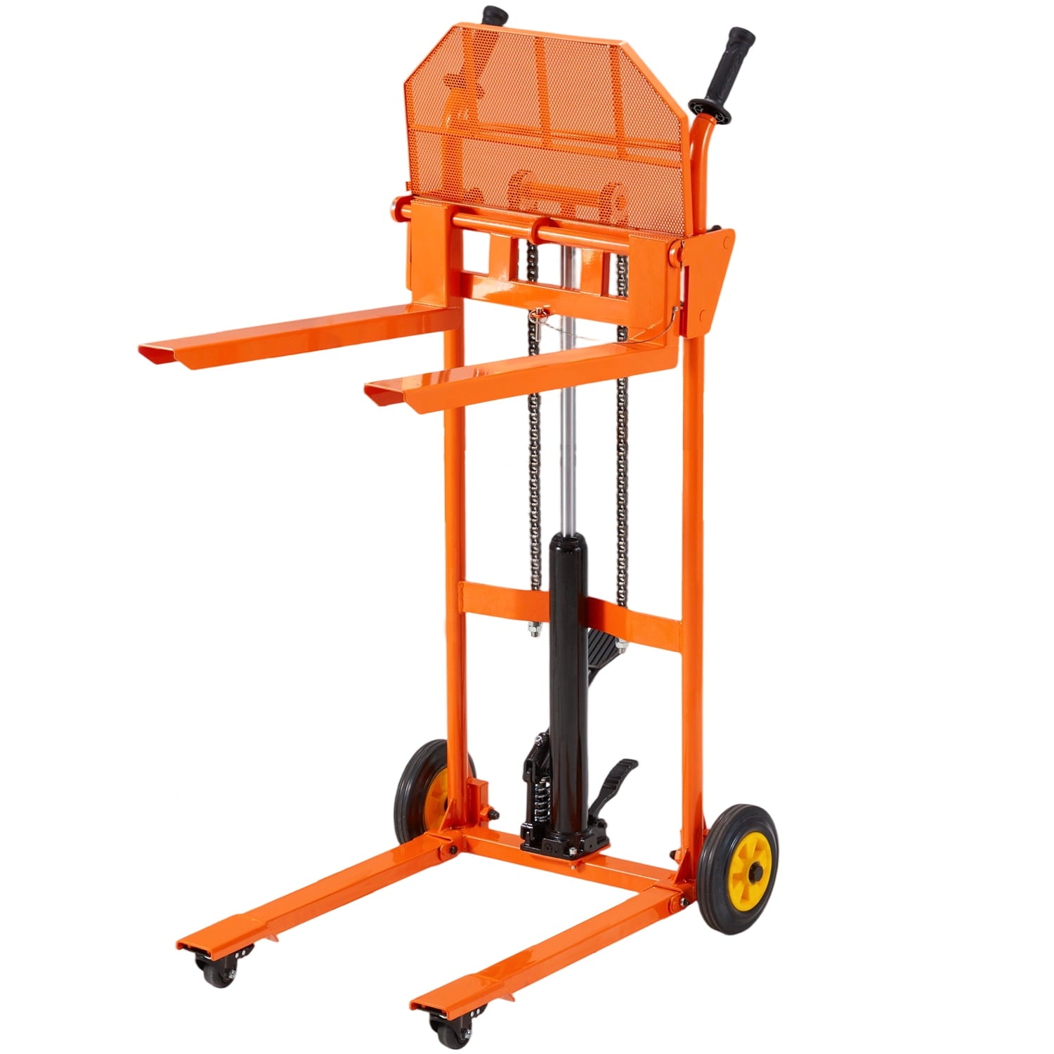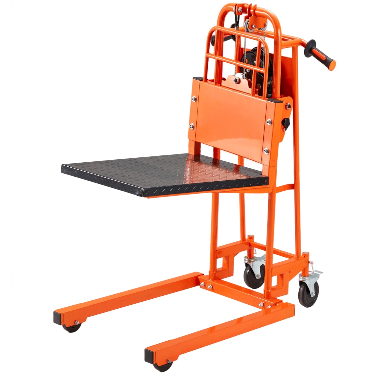 Hydraulic Power! Lift 500 lbs effortlessly to 32″ with our Pallet Truck. Smooth operation reduces back strain. Locking casters ensure safety. Perfect for warehouse, shop, garage. Upgrade Your Lift Game!