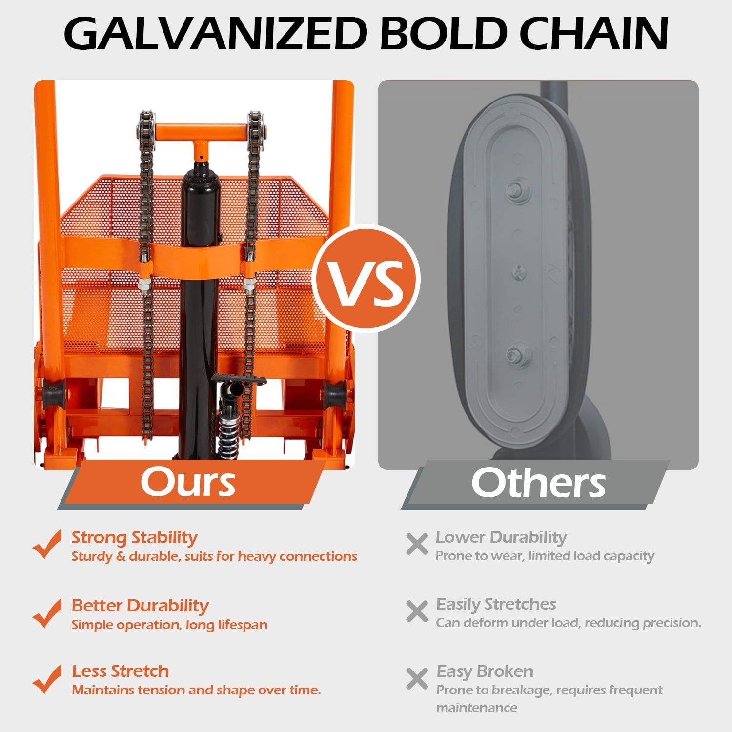 • Efficient Hydraulic Operation – Effortlessly operate the lift winch stacker with a smooth hydraulic lifting mechanism, providing precise control for lifting and lowering heavy loads without the need for electricity or complex setups
