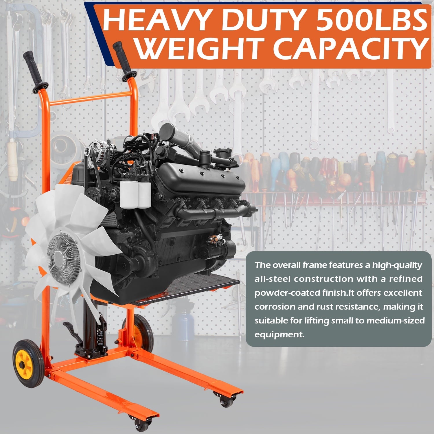 • ‌Heavy Duty Capacity – Capable of lifting up to 500 Lbs with a maximum lift height of 32 inches, making it perfect for lifting and moving tasks in warehouses, workshops, and factories