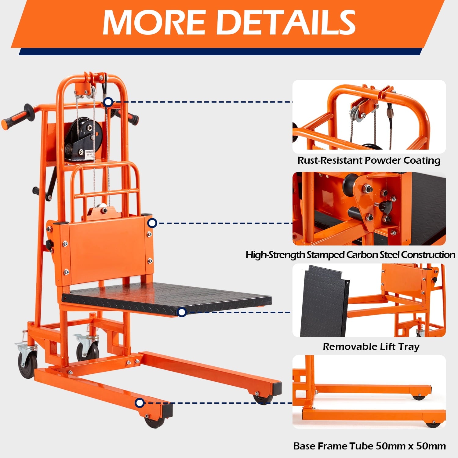 • Space-Saving & Easy Storage – Compact and efficient design allows for easy storage when not in use, saving valuable space while still offering excellent lifting capabilities for your material handling needs
