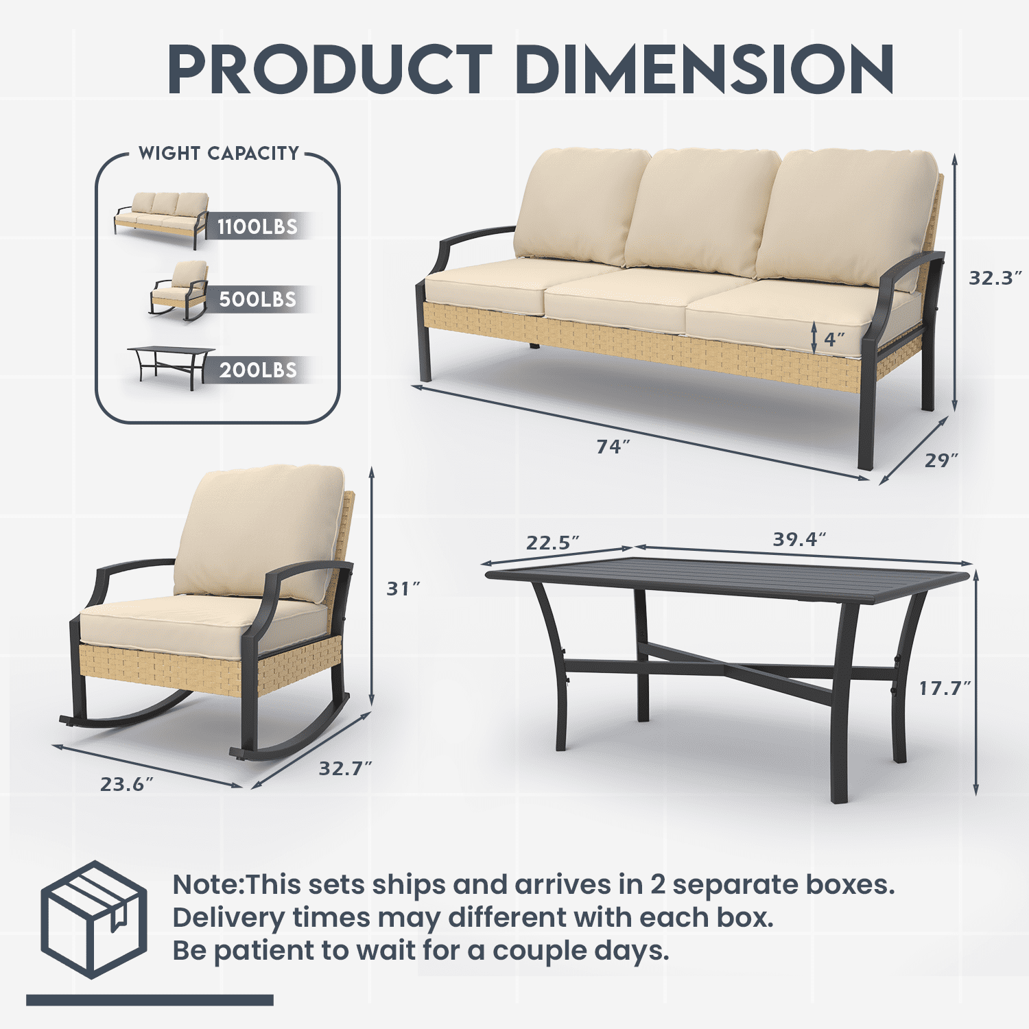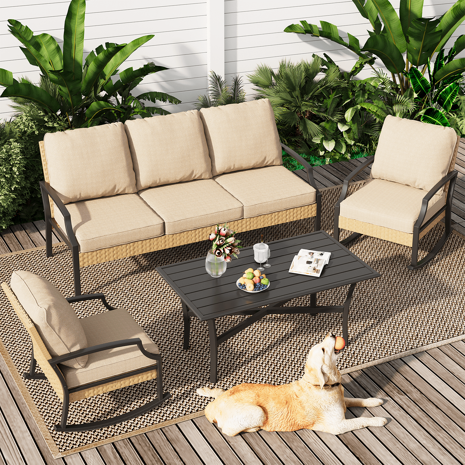- 【Quick Assembly & Anti-Wear Protection】Pre-drilled frames with numbered parts assemble in 40 minutes. Rocking chairs feature non-marking foot pads to protect decks from scratches. Modular connectors keep sectional pieces securely aligned through seasons.