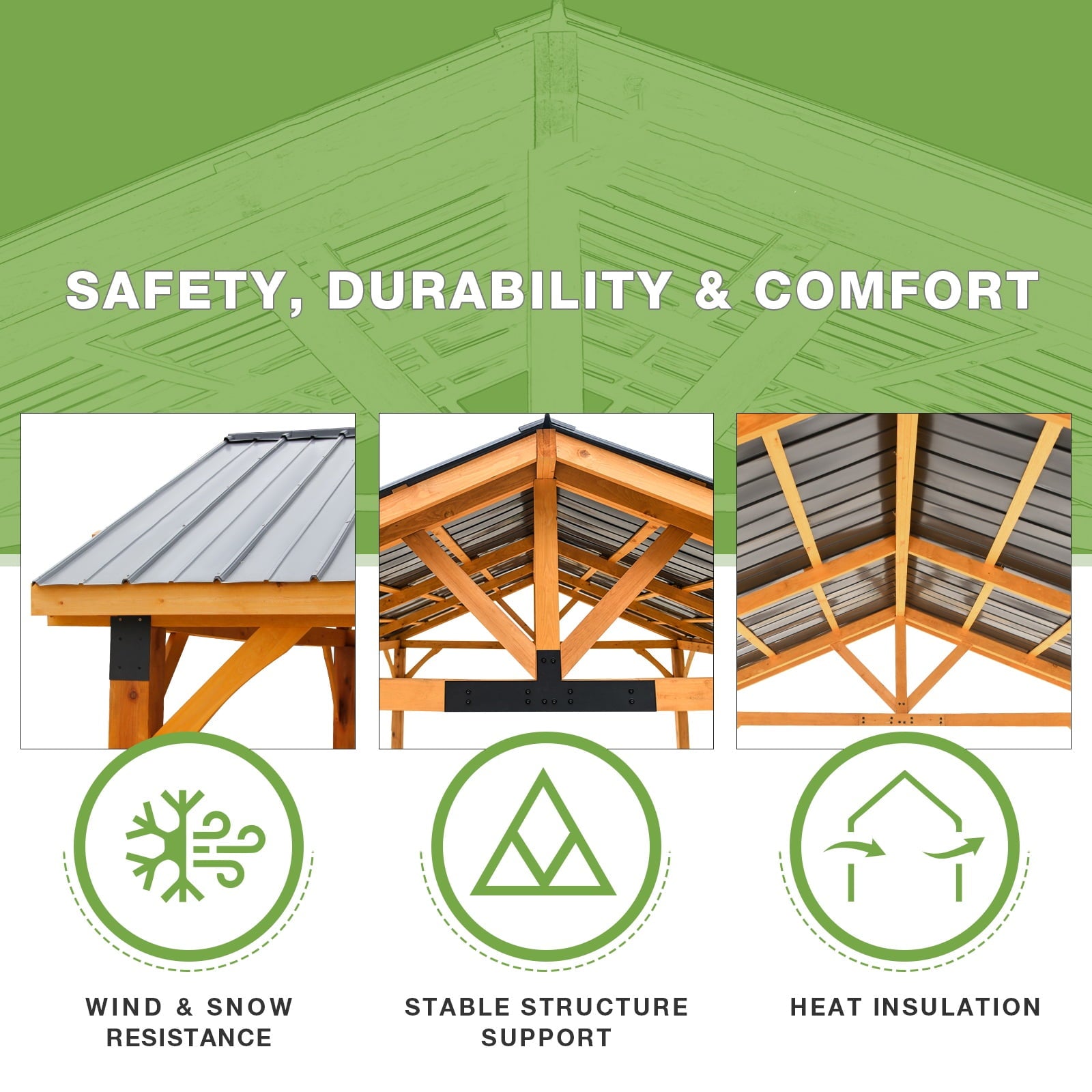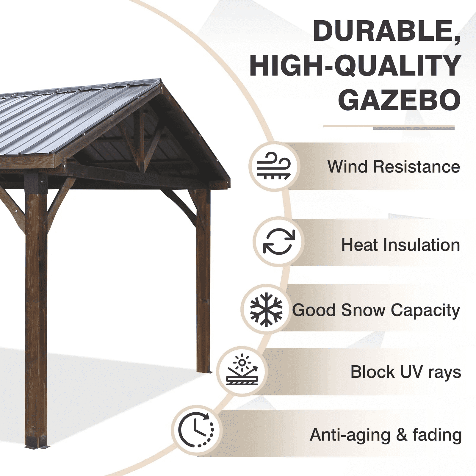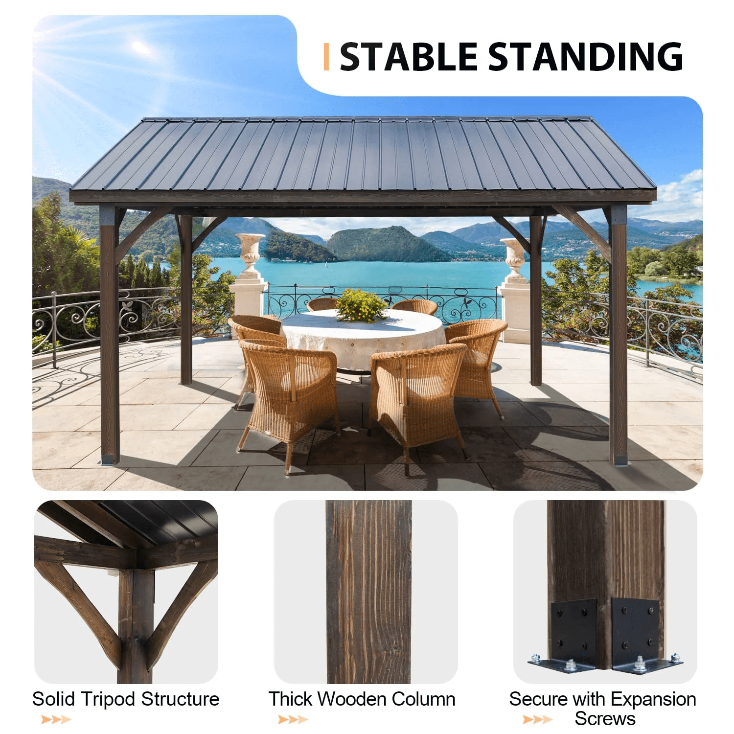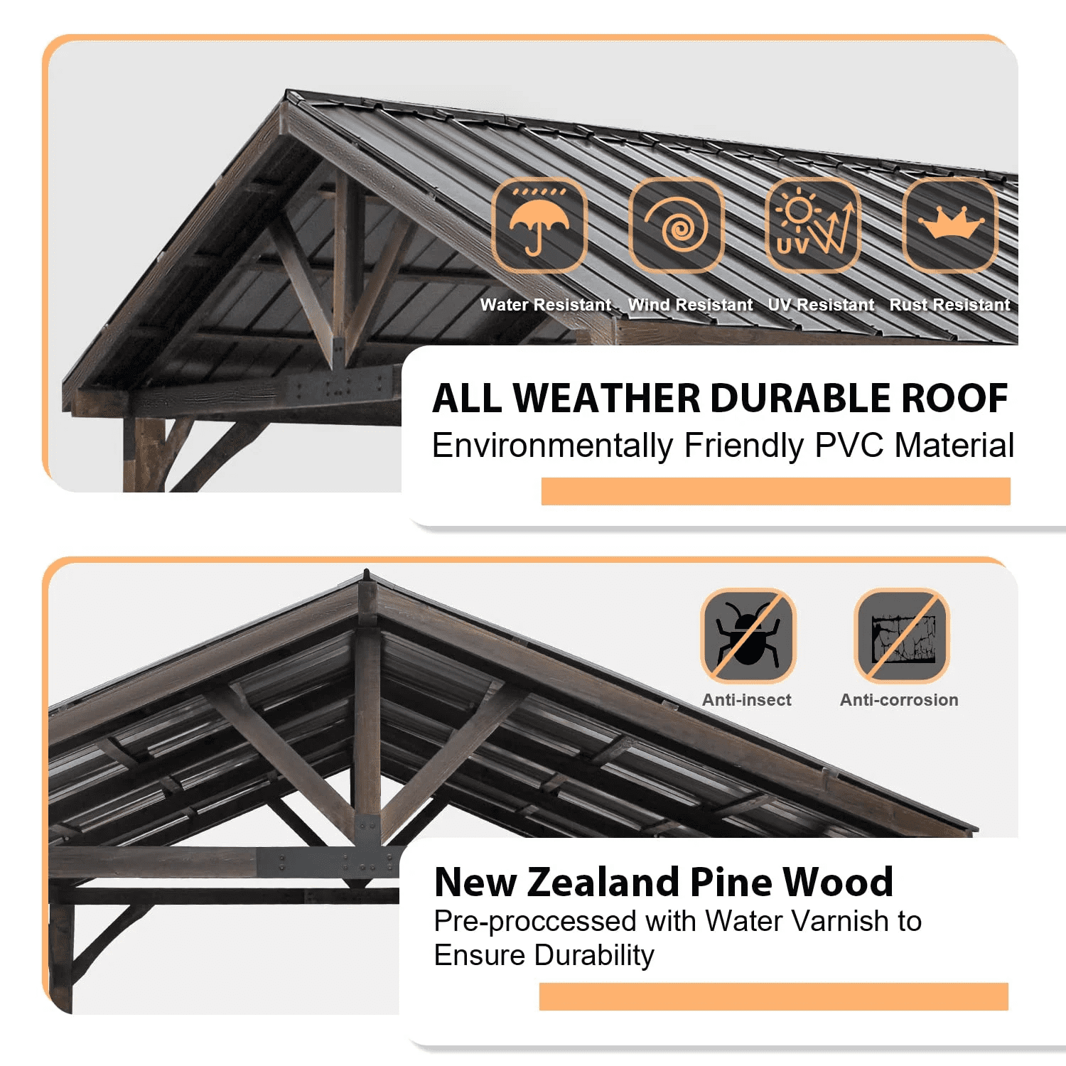 • High quality materials: This gazebo, using luxury New Zealand Pine, is beautiful & durable & can be added to the outdoor space for a long time.