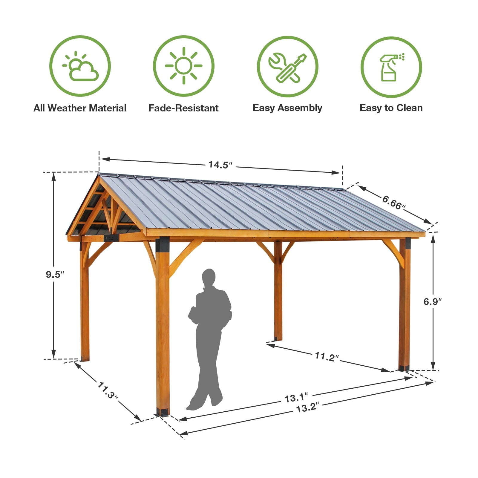 • Easy Installation: This gazebo, which has been cut, drilled, & colored, can be easily used.