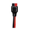 - The charger includes an LED indicator that changes from red to green once the battery has reached full capacity.