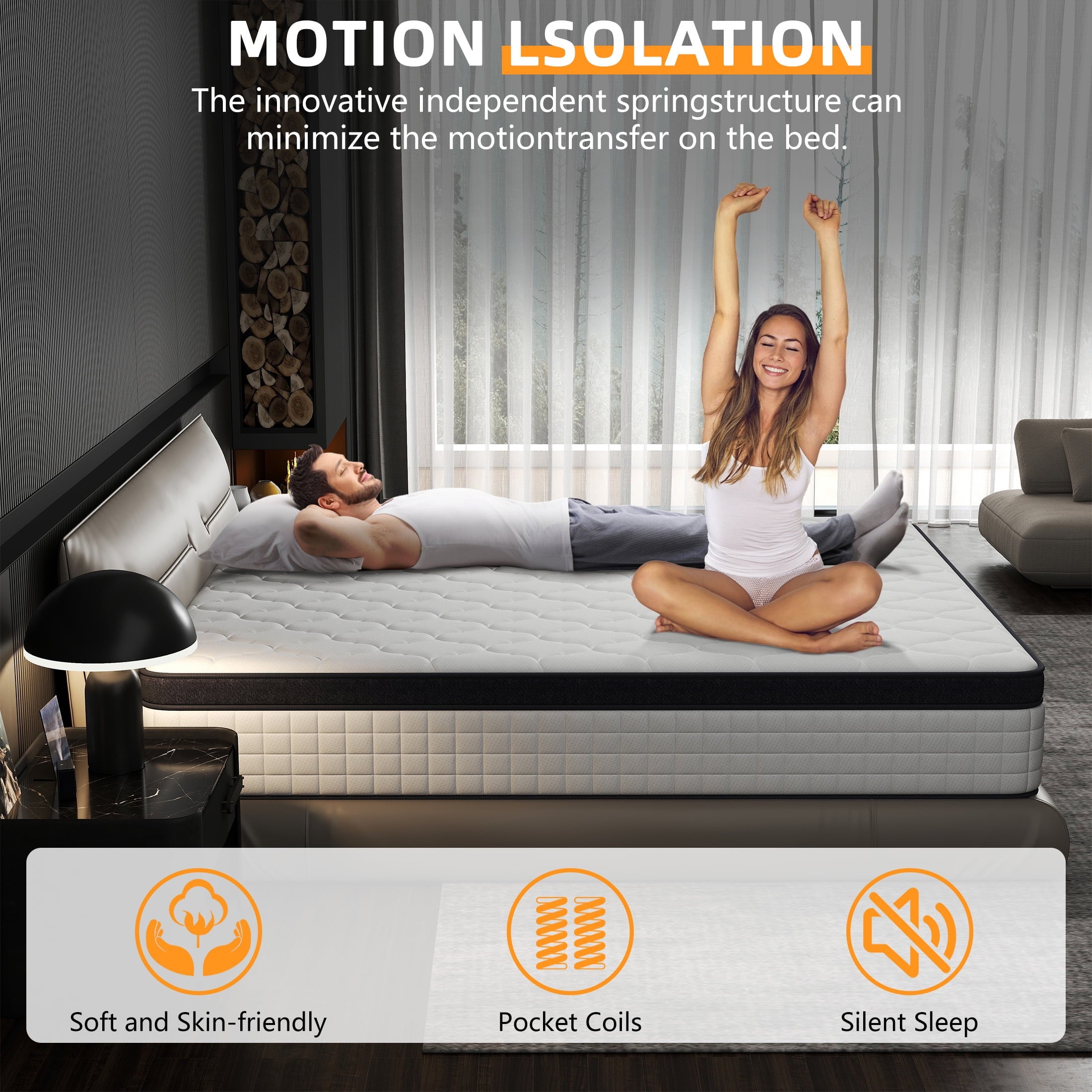 • Motion Isolation: Ideal for couples and light sleepers, the mattress uses independent pocket springs to reduce motion transfer, offering a peaceful night’s sleep without being disturbed by partners or pets.