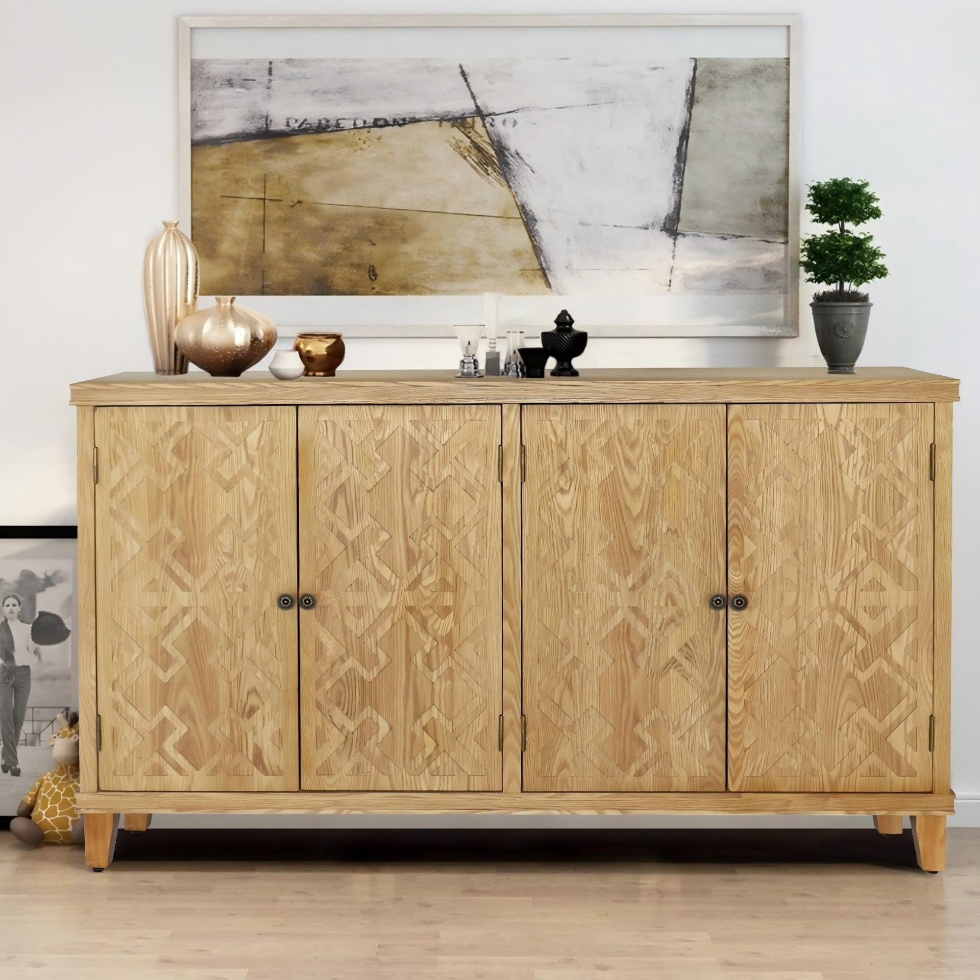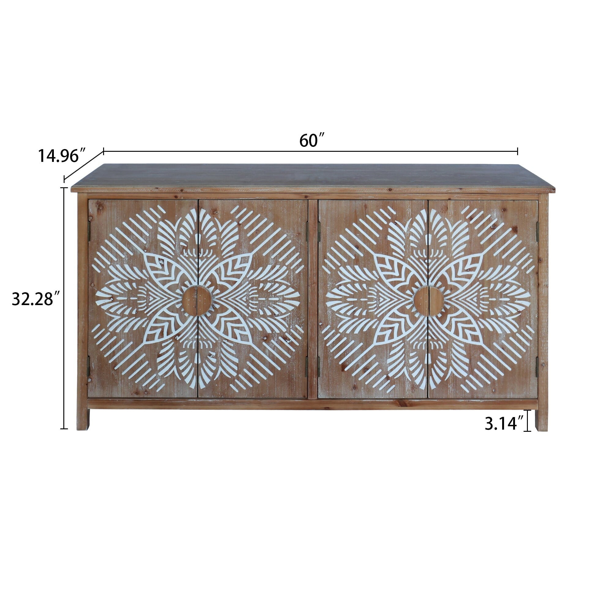 Bring warmth and character to your home with this vintage-inspired accent cabinet from AENKYO. Crafted from durable solid wood and detailed with beautifully carved doors, it blends artistry with everyday functionality. Adjustable shelves offer versatile storage, while the natural finish enhances its classic charm. Whether placed in an entryway, living room, or dining space, it adds timeless elegance and organization.