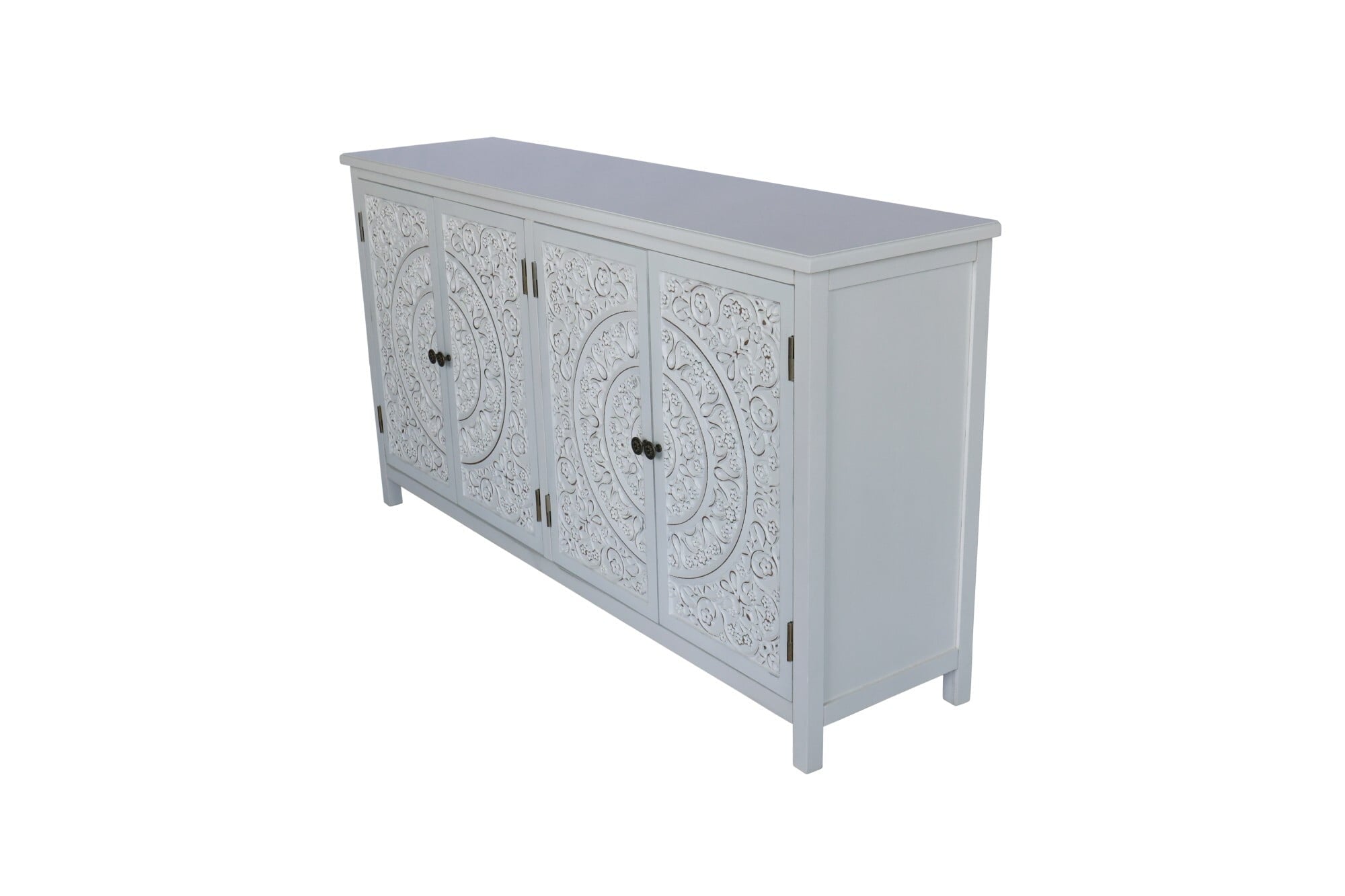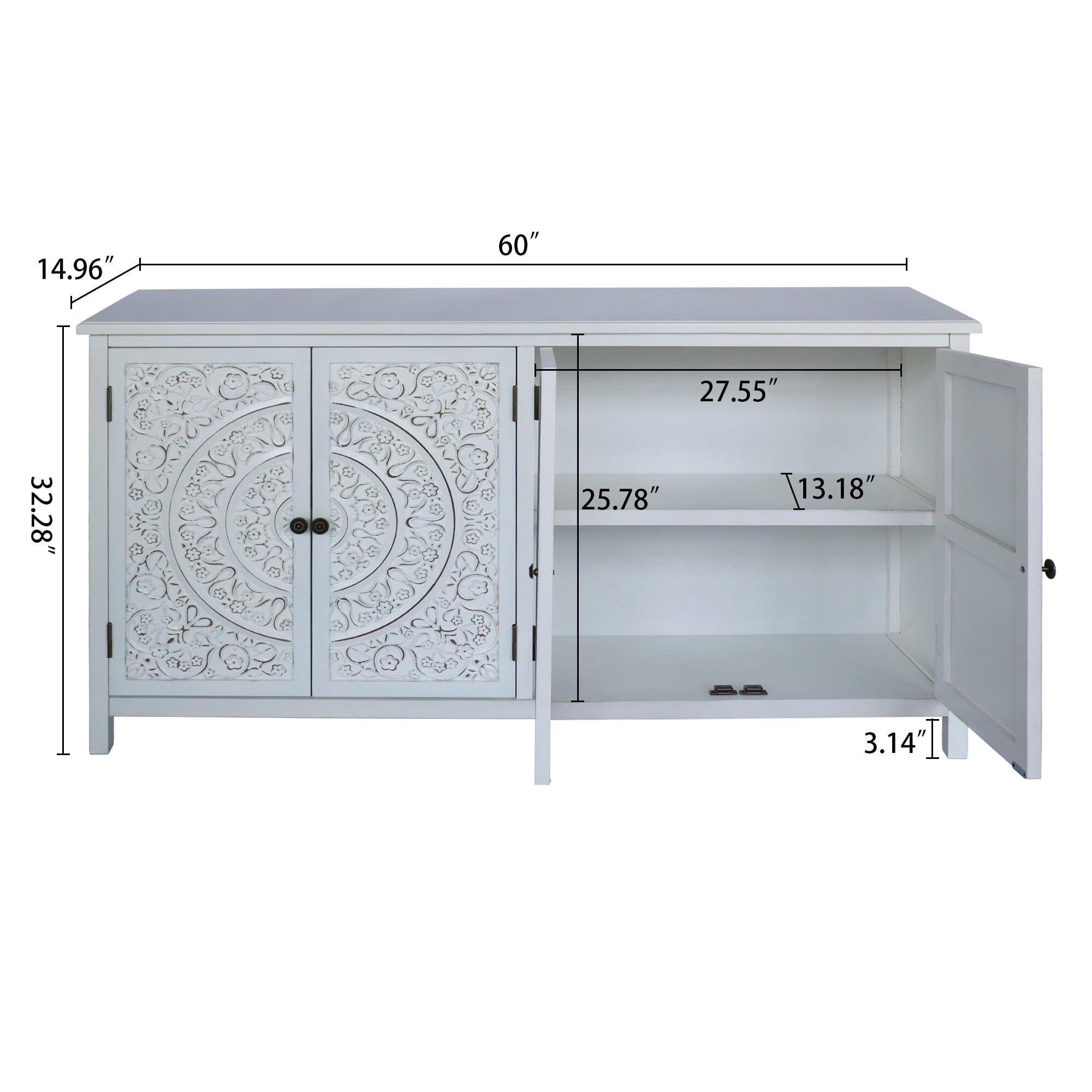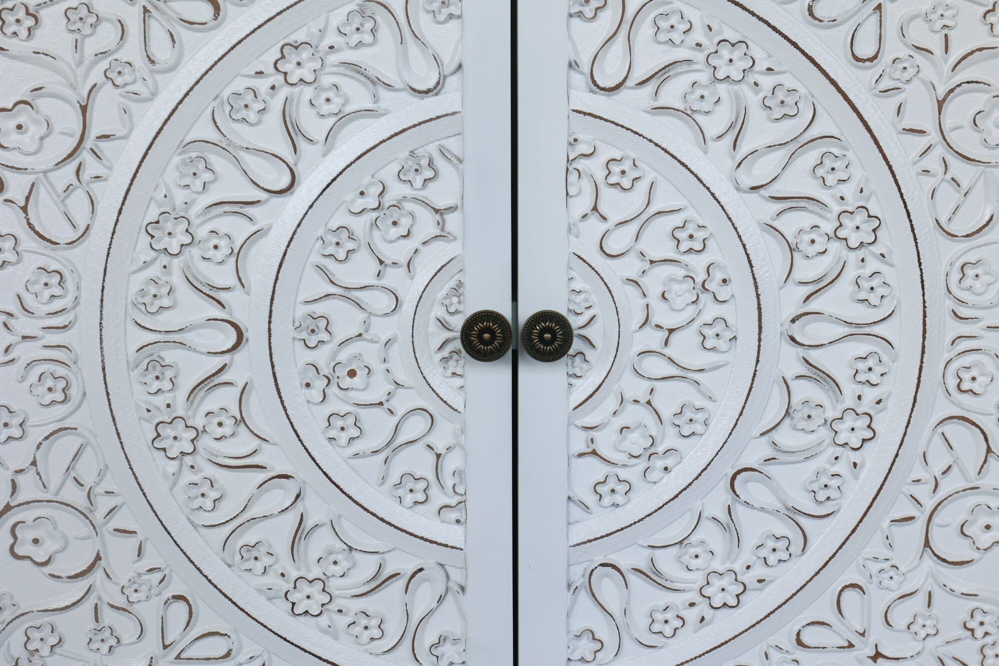 Elegant Vintage Design – This accent cabinet features intricately carved doors and a timeless vintage finish in antique white, brown, or natural. The handcrafted pattern adds character and charm, making it a stunning focal point for any space.
