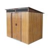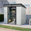 This 6′ x 5′ garden storage shed is an ideal storage solution for small gardens or areas with limited space. Durable construction with galvanized steel reinforcement makes this storage shed rustproof and UV-resistant. And the metal floor frame makes this shed more sturdy and durable. The inclined slope roof adds extra storage and prevents rainwater from gathering and preventing rust. The lockable door grants extra safety. This AYO-GND8-011 outdoor storage shed has the perfect size for storing bicycles, lawnmowers, barbeques, and garden tools. Perfect for your garden, backyard, lawn, and any outdoor space you want.