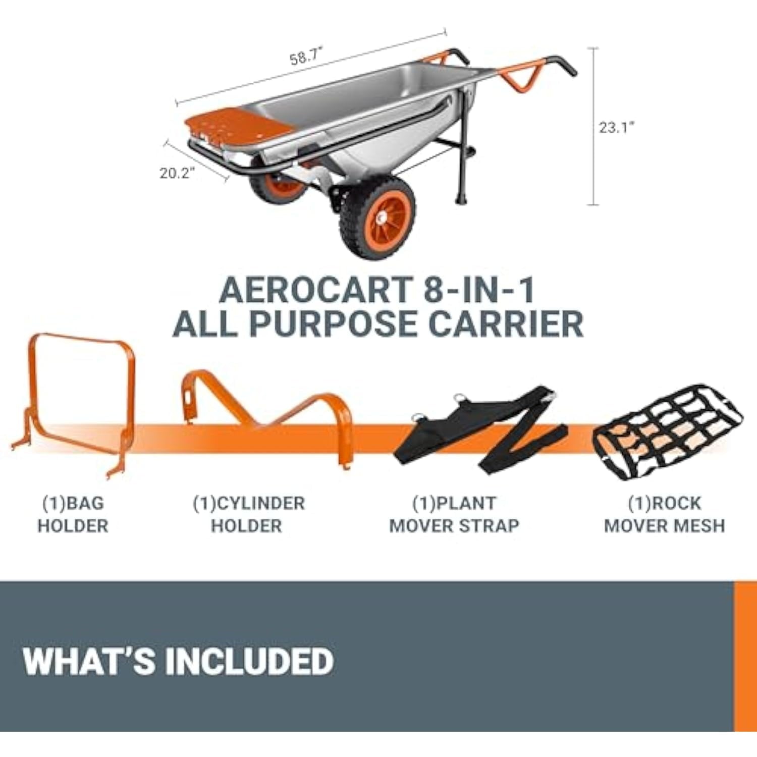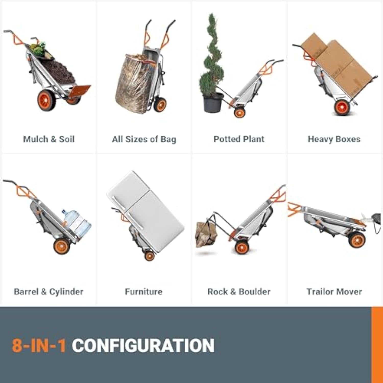 - INDEPENDENCE IN EVERY TASK: The Aerocart garden cart turns daunting two or three-person tasks into solo adventures. Whether it’s as an 8-in-1 wheelbarrow, hand cart, or a dolly that lifts up to 200 lbs., you’re in control.