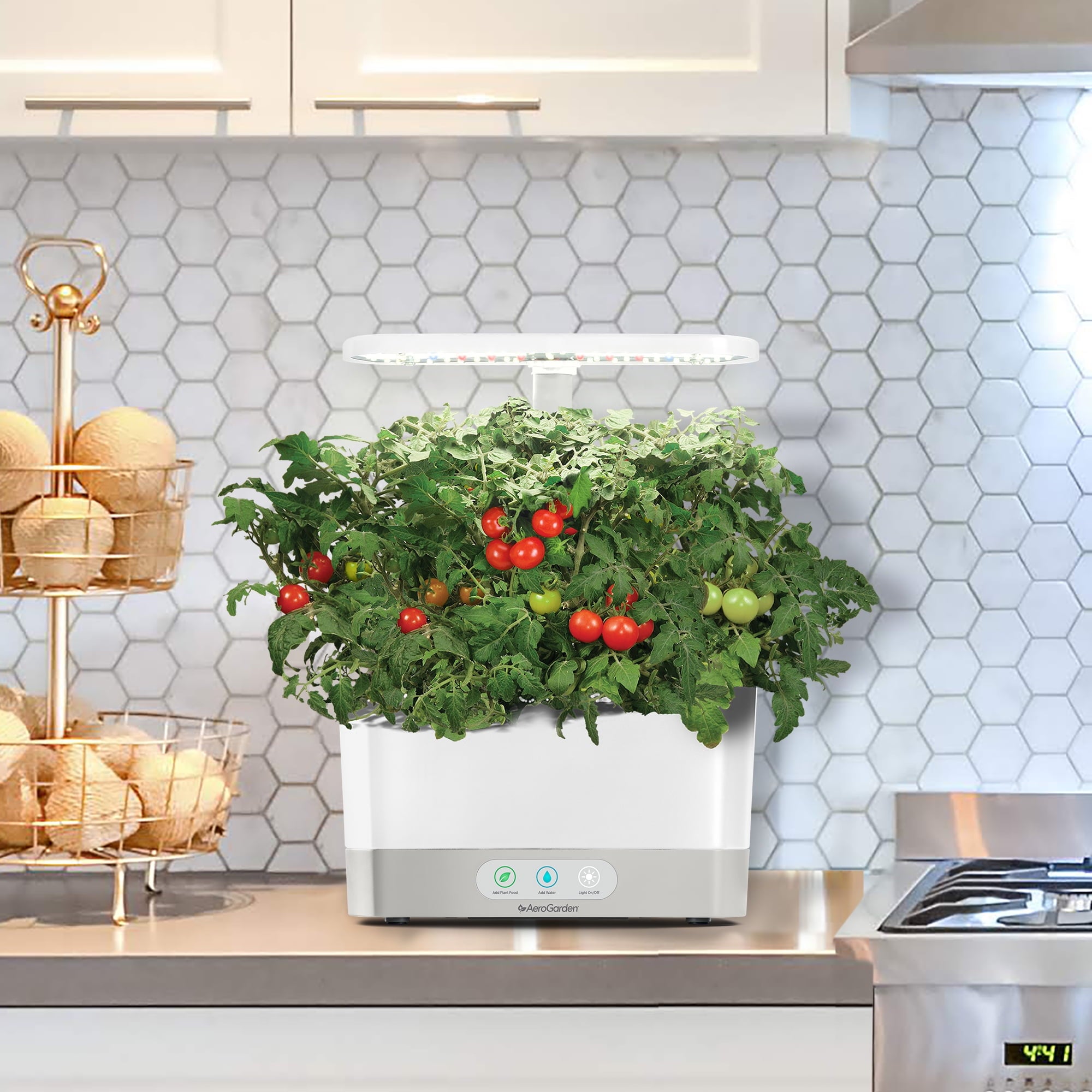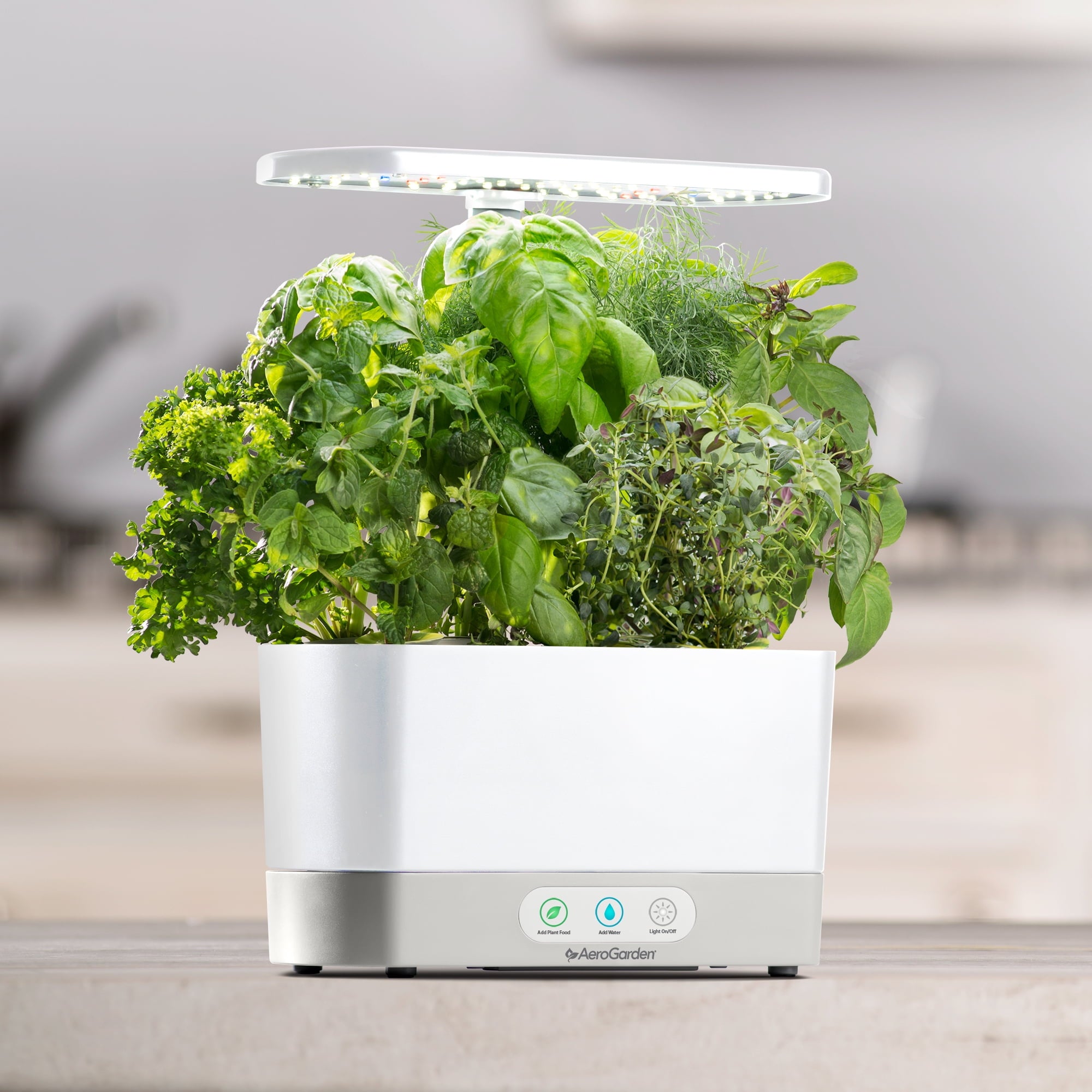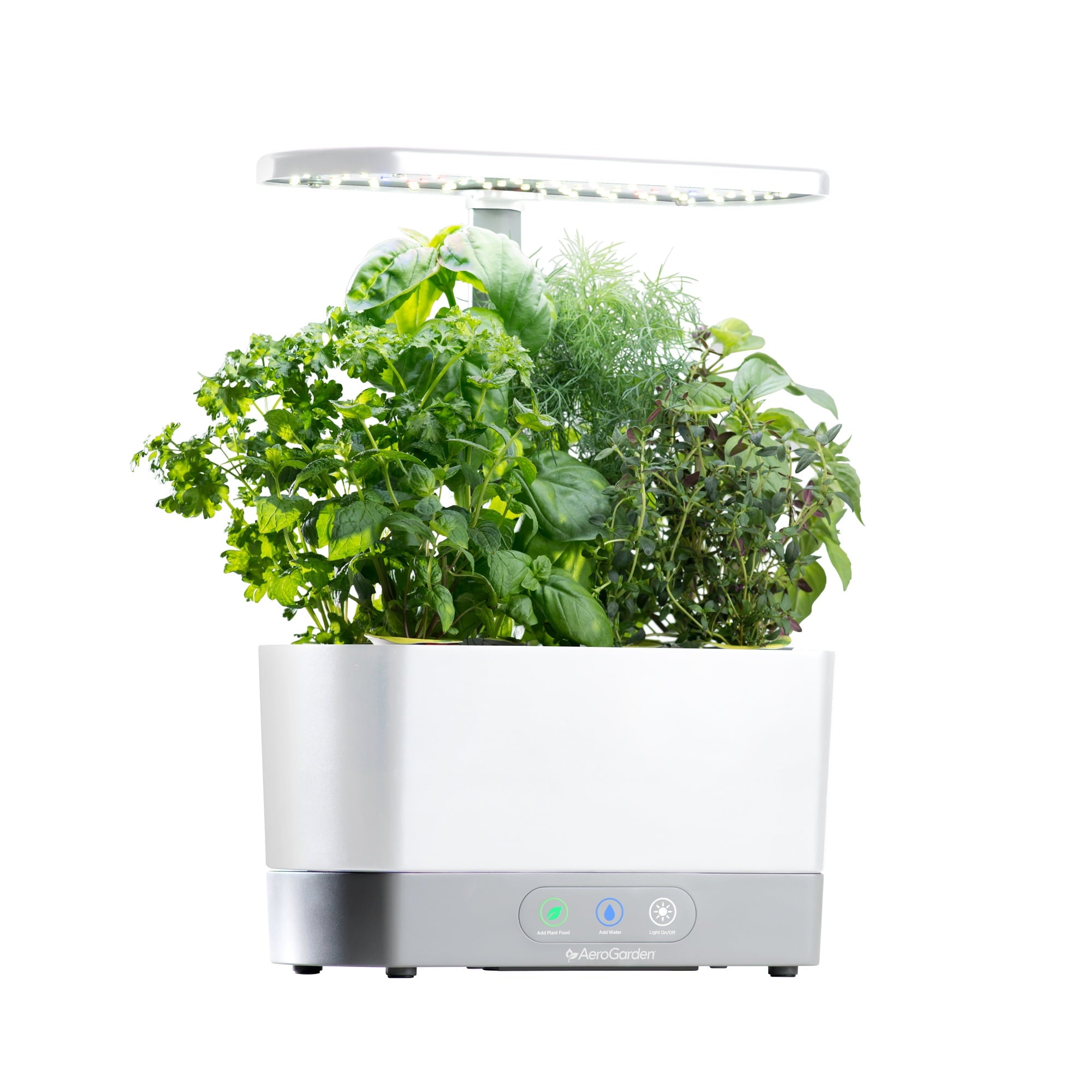 Grow fresh herbs & veggies all year-round in the AeroGarden Harvest. Create gourmet meals from plant to plate with this in-home garden system Automatically turns energy efficient LED grow lights on and off Reminds you when to add water and plant food No soil, no mess: Soil-free, non-GMO Seed Pods Compact rectangular shape and glossy white finish Includes: 6 endlessly fresh gourmet herbs – Genovese Basil, Curly Parsley, Dill, Mint, Thyme, Thai Basil and Miracle-Gro plant food. With an AeroGarden it’s always fresh, always local, and always in season.