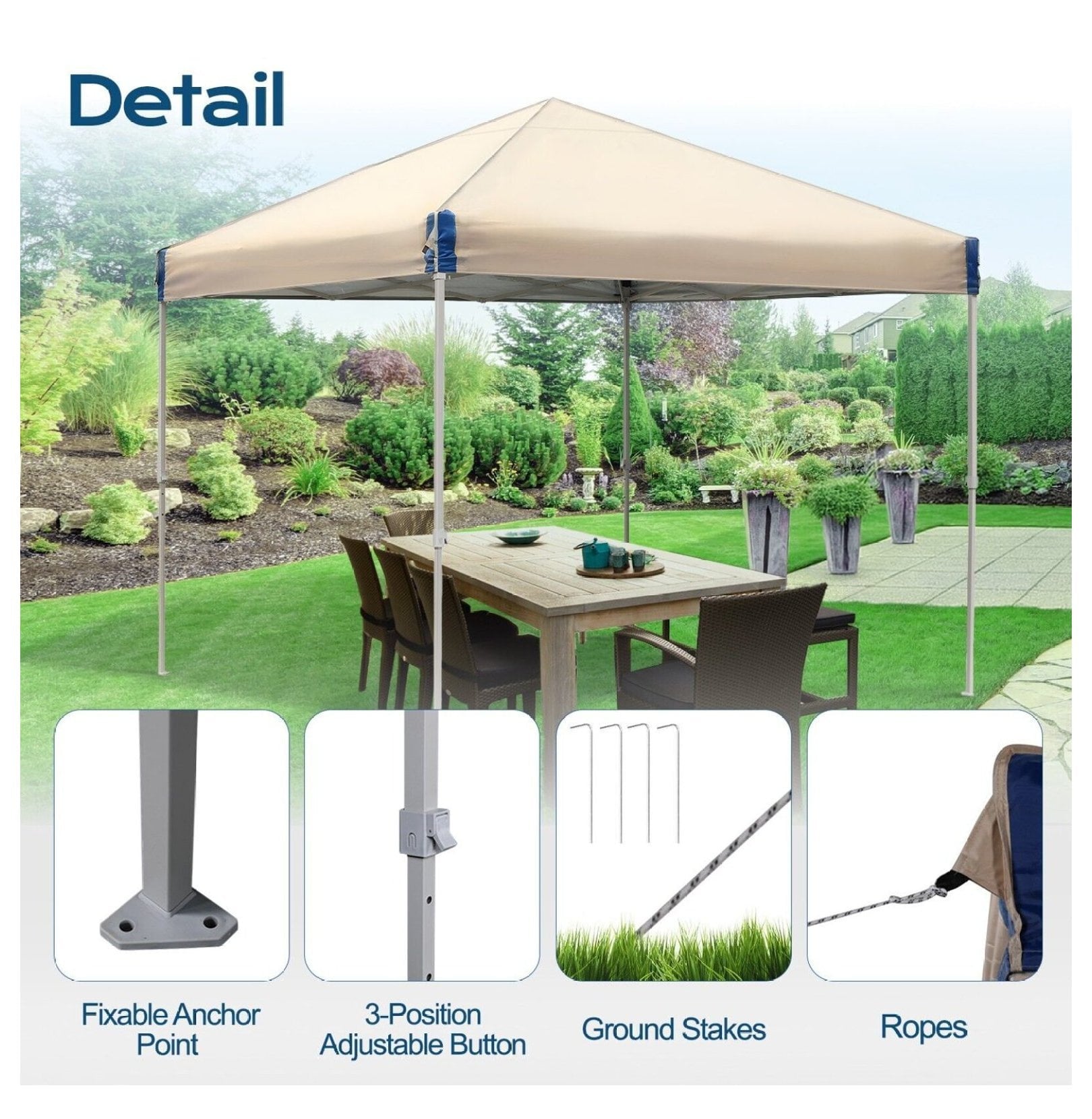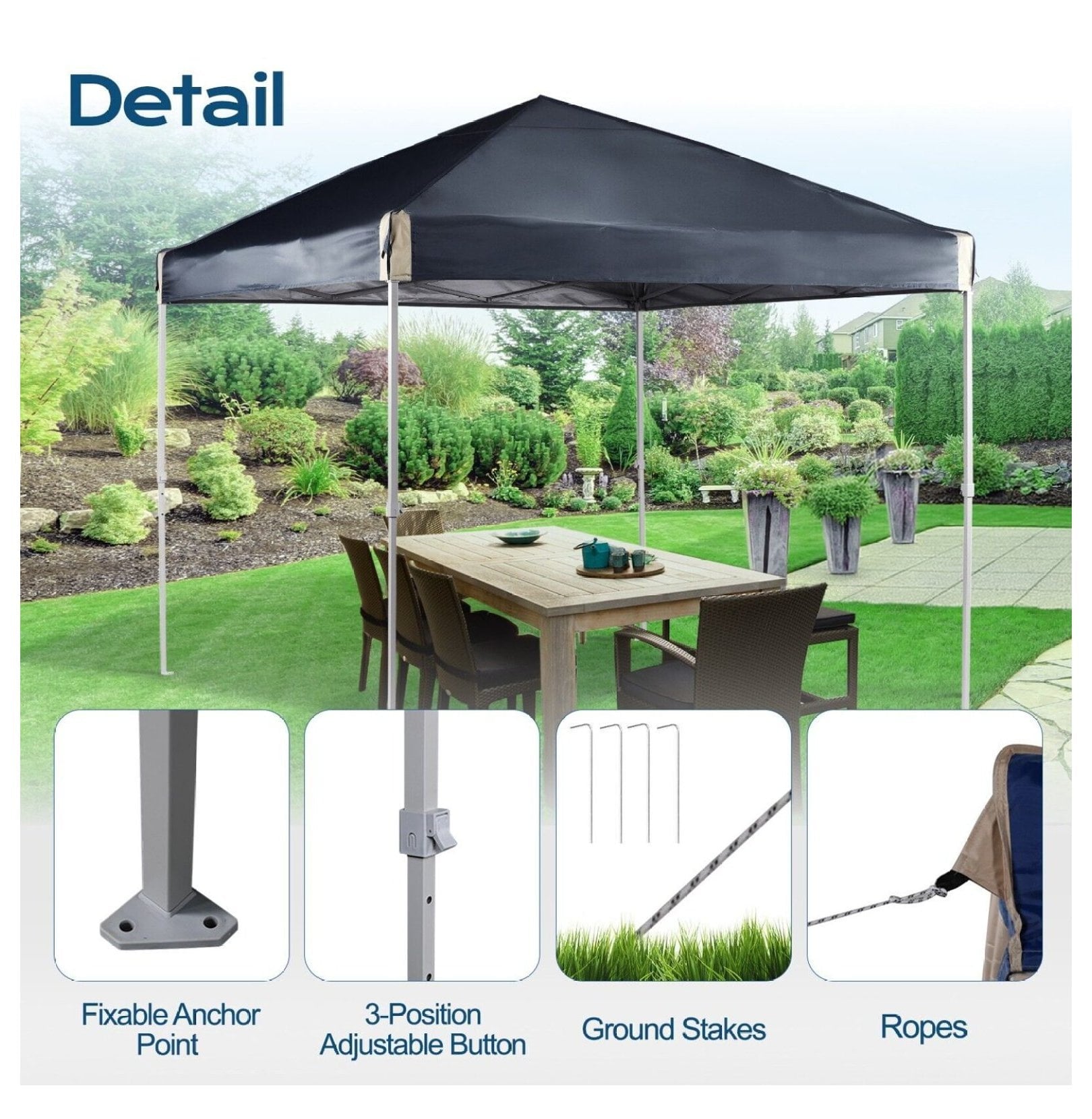 Sturdy Frame – Crafted with a robust iron frame and a powder-coated finish, this pop-up canopy is built to withstand the elements. The included stakes and ropes ensure secure anchoring, enhancing wind resistance and providing unparalleled stability even in high winds.