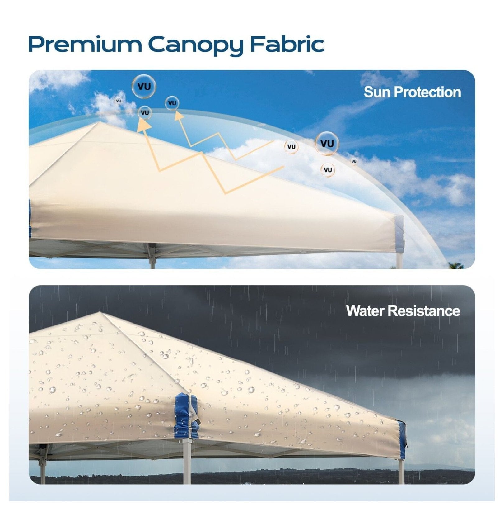 - Premium Canopy Fabric: The canopy roof is constructed from durable 210D oxford fabric with a PU coating and silver lining. This combination not only makes it water-resistant and wear-resistant but also blocks up to 99% of harmful UV rays, creating a cool and comfortable space.