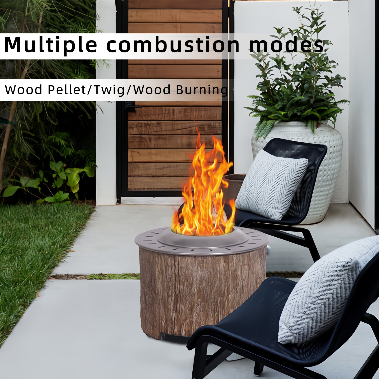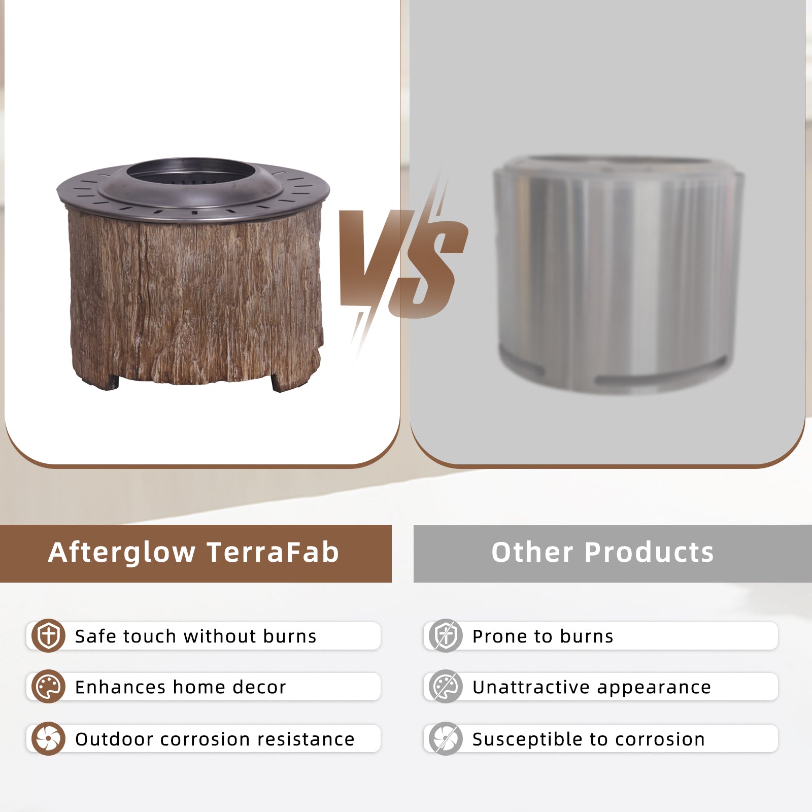 This smokeless firepit is mainly made of Terrafab in natural wood concrete effect. The case pack quantity is one and its weight is 45.1 lbs. Smokeless firepit with wood pellet/Twig/wood log as the fuel. The case pack and retail pack dimensions are 22.83×22.83×17.91 inch. The product is packaged open stock and is not in a PDQ. The product is intended for outdoor use.