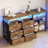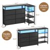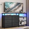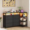 Afuhokles 6 Drawer Dressers for Bedroom with Charging Station and LED Light, 6 PU Drawers, 3 Open Shelves, Black