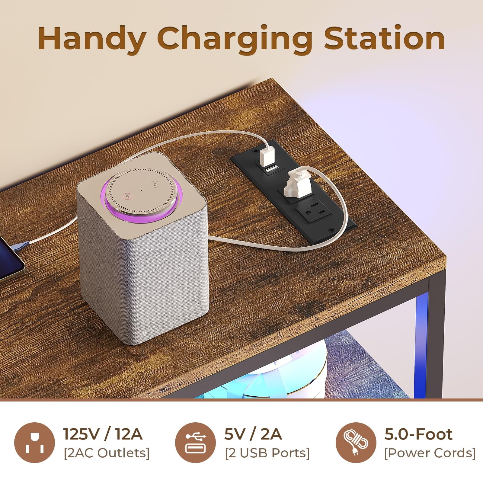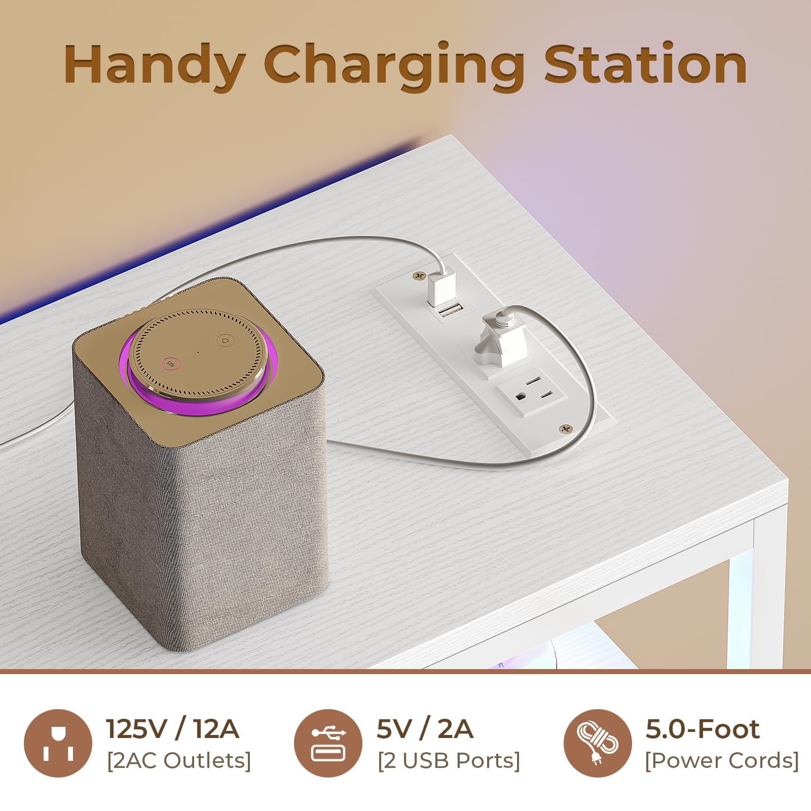 Included Components: Anti-tip Kits, Space Saving, Open Shelves, Suitable for 60″ TV, Led lights,Charging Station, Changeable Corner Style
