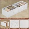 • This dresser measures 53.5 inches wide X 11.8 inches deep X 31.5 inches high and has a wood top suitable for TVs up to 60 inches. It comes with 6 large PU fabric drawers that measure 11.8 inches wide X 7.9 inches deep X 15.4 inches Great for storing clothes, CDs, DVDs, game controllers and more.