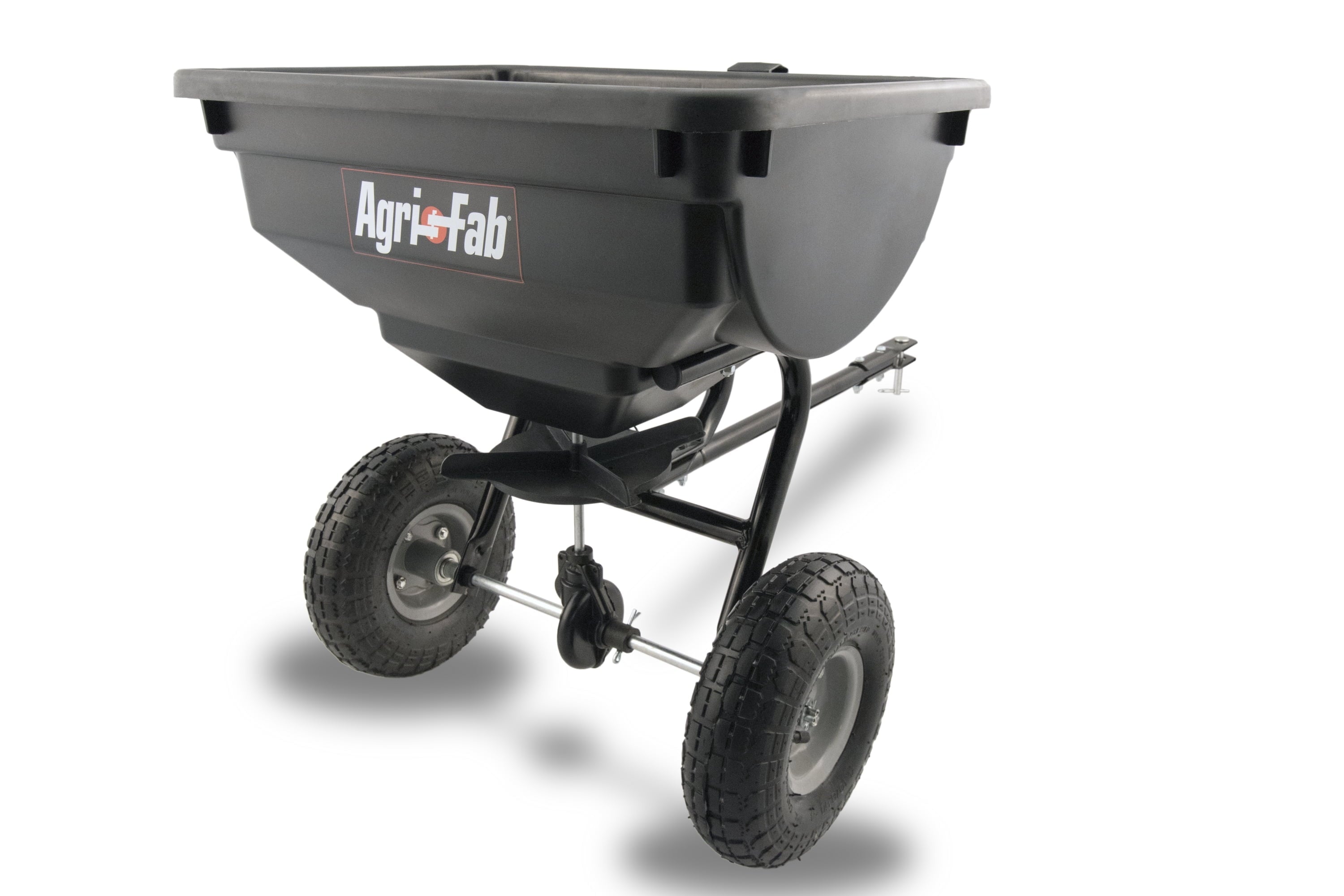 The Agri-Fab, Inc. 85 lb. Tow Spreader Model #45-0530 will help you grow the beautiful lawn that you?ve always wanted. The best time to use a spreader is in the spring. For optimal results, spread grass seed over bare areas when needed. In the summer, fertilize and feed when necessary to enhance growth. The 10 inch pneumatic tires provide a smooth transport on the project area. An enclosed gearbox prevents spreading grass seed or fertilizer from disrupting activity. Depending on material and speed of application, the 85 lb. Tow Broadcast Spreader can cover up to 14,000 square feet in one fill. A hopper cover and a deflector are optional accessories used to keep the material dry and to narrow the spreading pattern. An optional grate accessory improves material flow and spreader performance. A rod flow control provides an easy method to open or close during spreading, without having to dismount your tractor. The Agri-Fab 85 lb. Tow Spreader Model #45-0530 will last you for years to come with proper care and use. All Agri-Fab, Inc. products come with a 3-year limited warranty.
