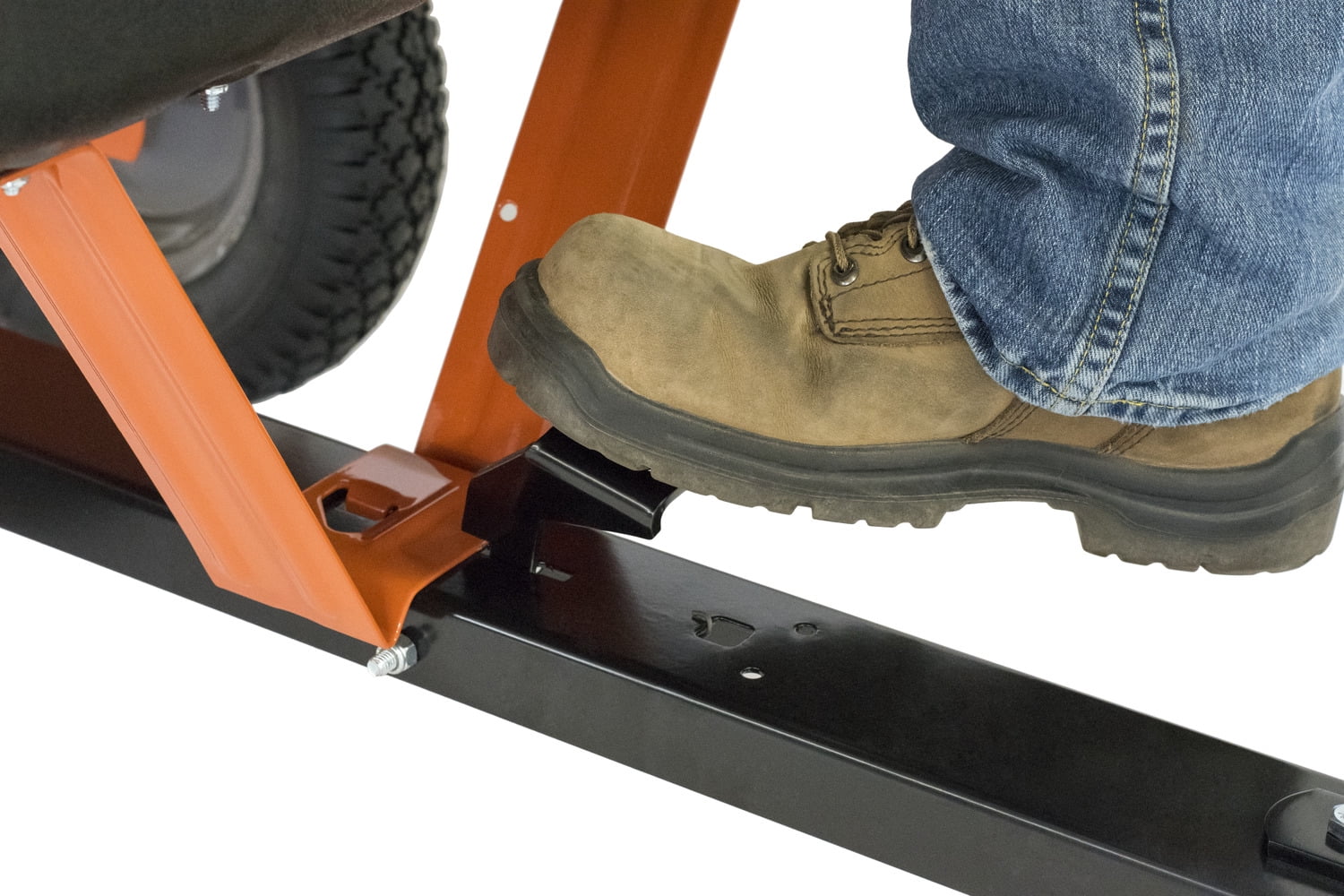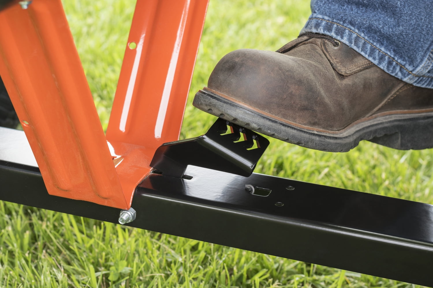 - Unloads and dumps heavy materials in one easy stepping motion;