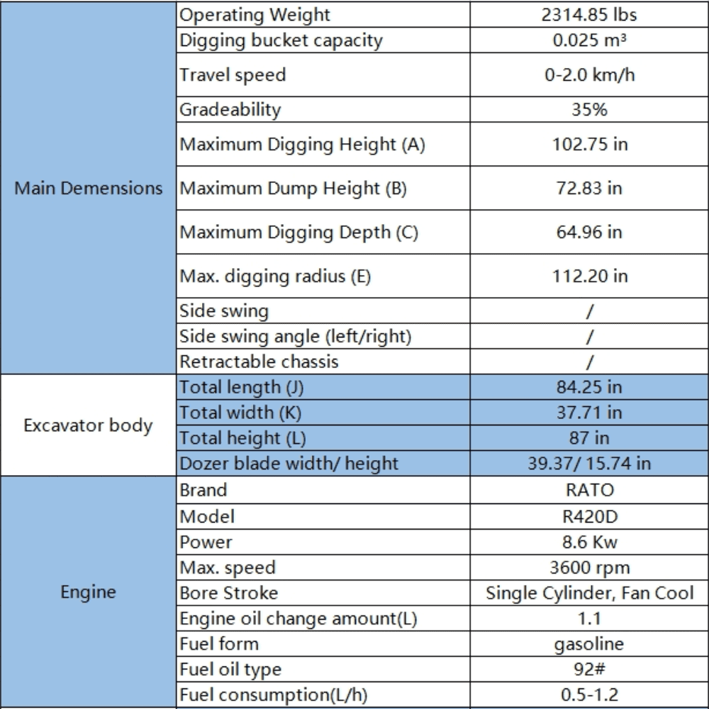 Max Digging Radius: 112.2 inches