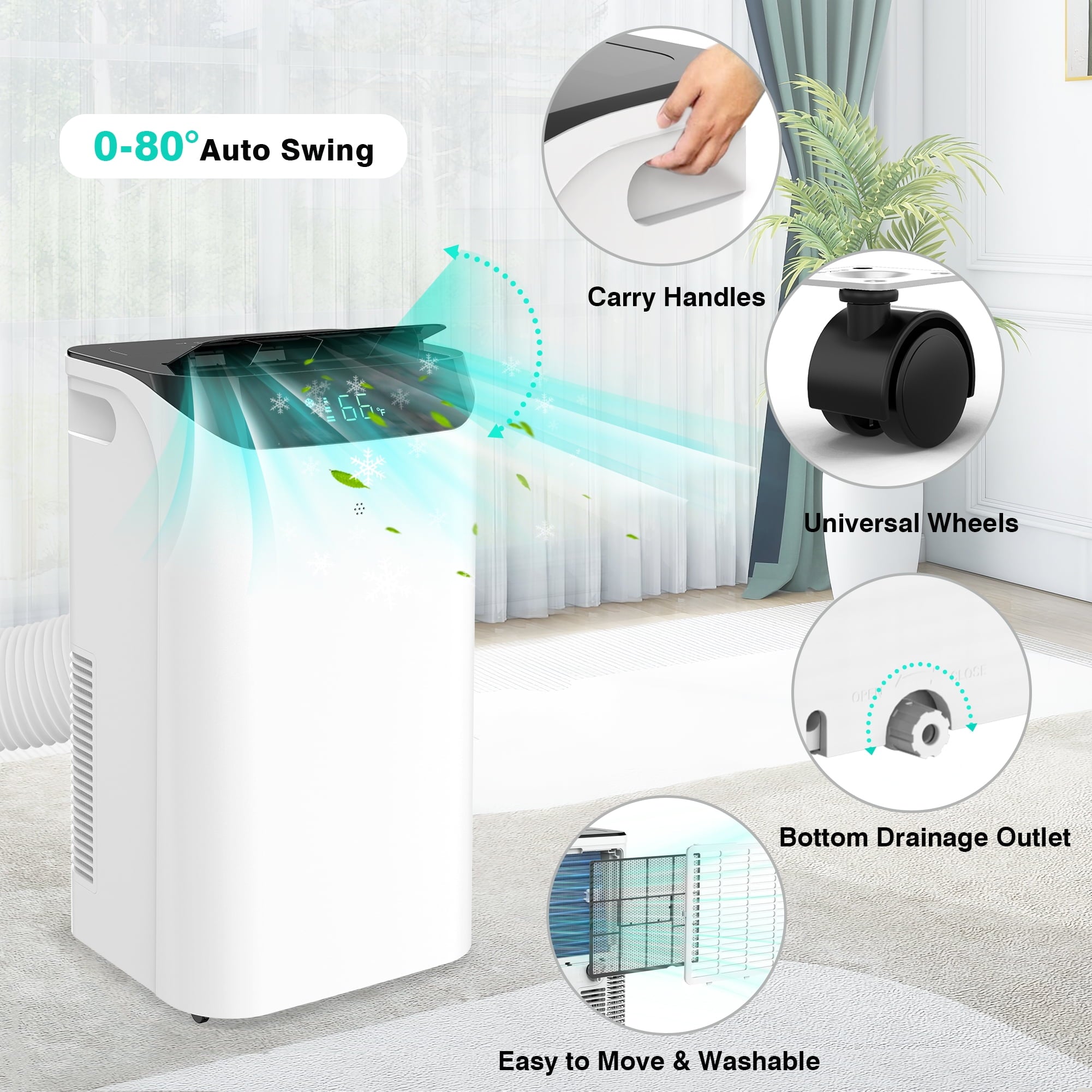 - 【Timer Function & Auto Swing】This air conditioning unit is designed with your convenience and safety in mind, featuring a 24-hour programmable timer function. Additionally, the unit’s 80° auto swing feature effectively circulates air throughout the room, providing consistent and rapid cooling.