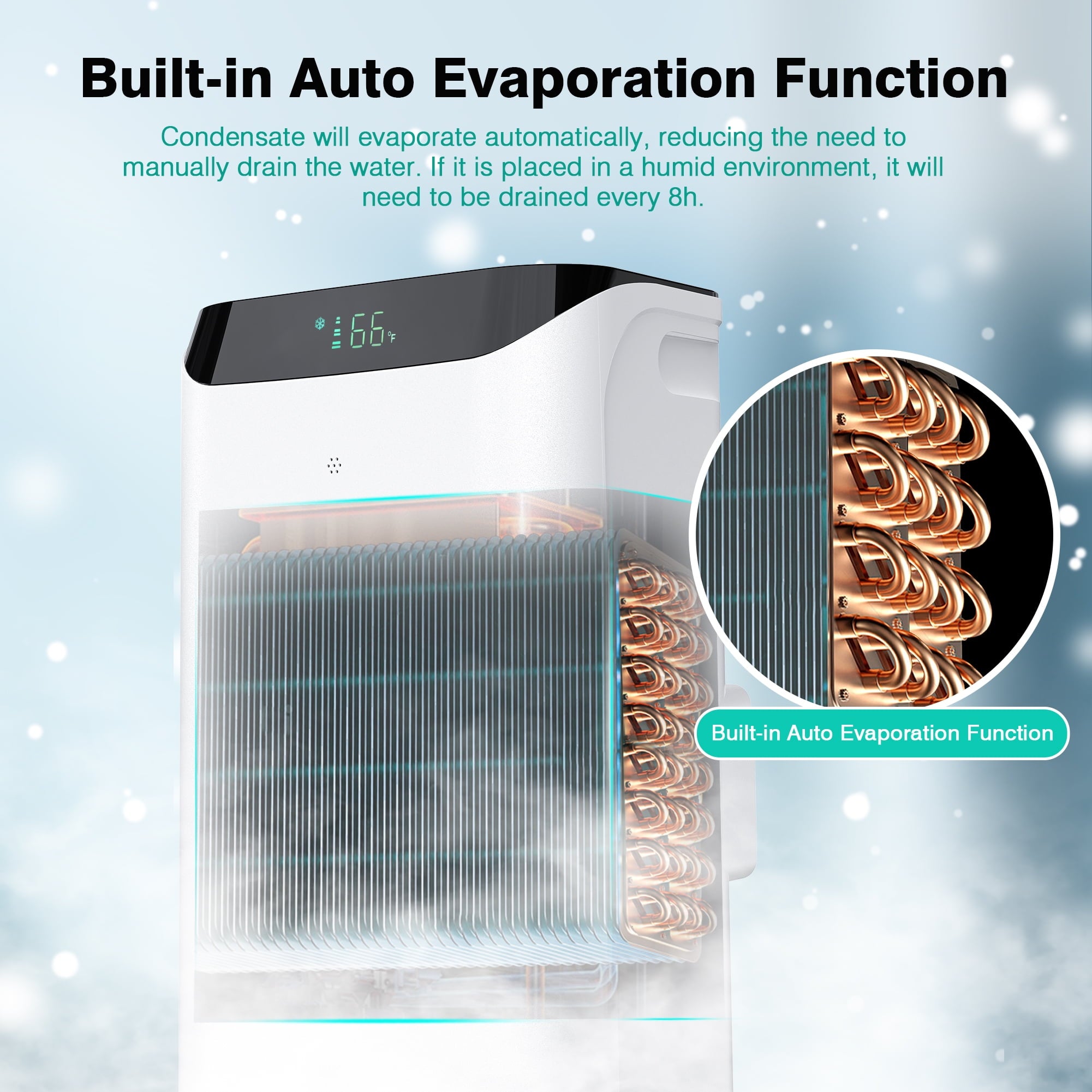 - 【3 Operating Modes】Equipped with a 3-in-1 design, this air conditioner doubles as a fan, dehumidifier, and portable AC unit, meeting your various needs. You can select from four fan speeds (high, medium, low and auto) and adjust the temperature between 61℉ and 88℉ for personalized comfort. With a maximum daily dehumidification capacity of 95 pints, your room stays fresh and dry at all times.