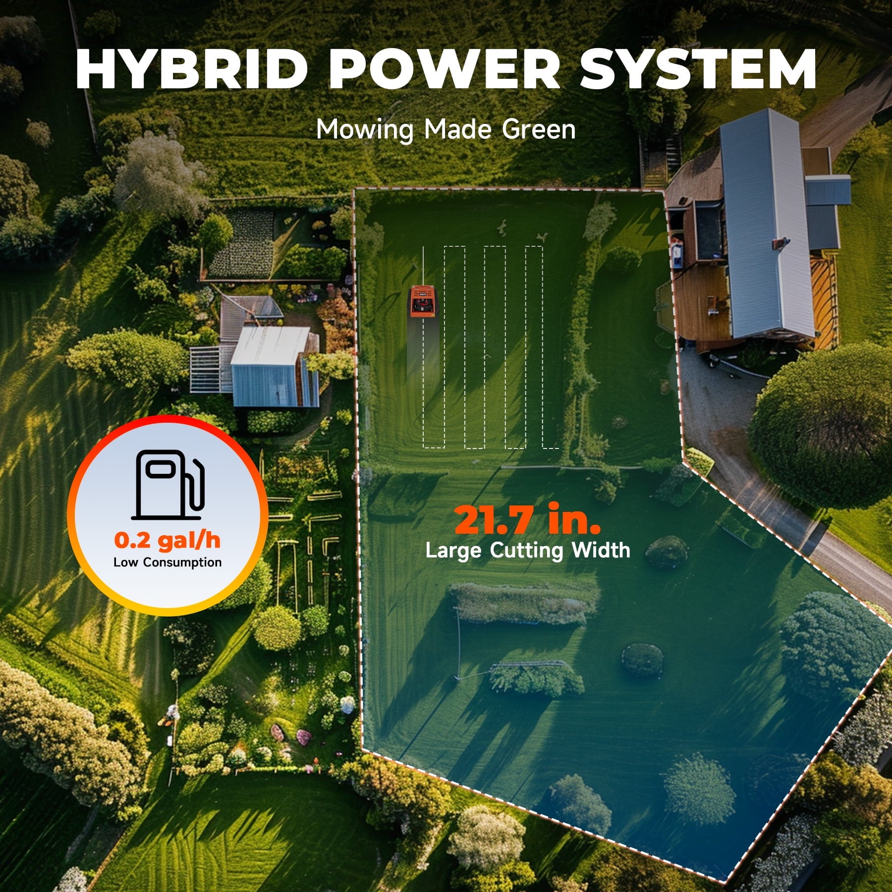 Tired of struggling with your grassy lawn and wild hills every weekend? Say goodbye to the exhausting push-and-pull routine with the AHM hybrid lawn mower! Powered by a rechargeable battery alongside a robust 5 hp 4-stroke engine, this hybrid mower is built to handle slopes up to 45° and easily covers up to 0.25 acres, ensuring your lawn stays immaculate with minimal effort.