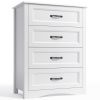 Home Dressers Aiho 4 Drawer Dresser for Bedroom, Tall Wood Dresser with Large Drawer & Delicate Handles for Closet, Living Room, Hallway – White