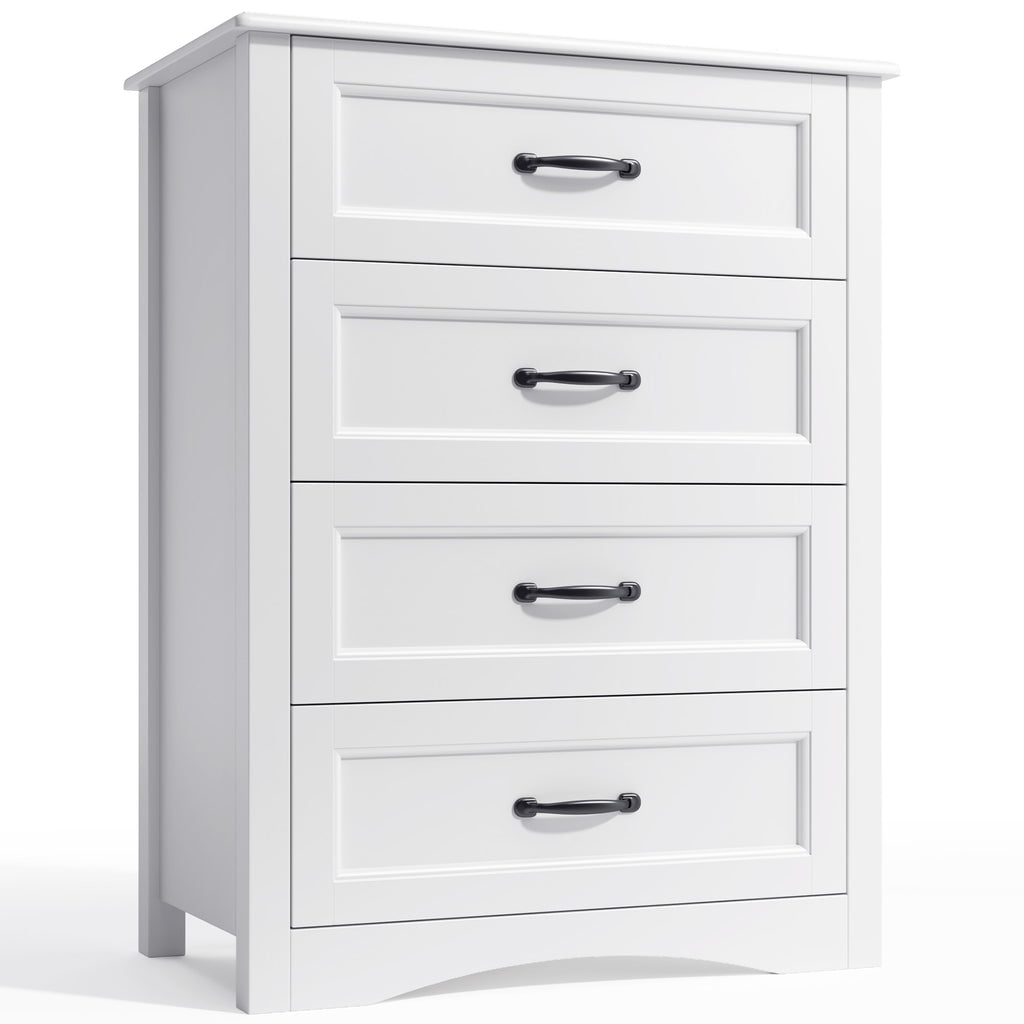 Aiho 4 Drawer Dresser for Bedroom, Tall Wood Dresser with Large Drawer & Delicate Handles for Closet, Living Room, Hallway - White