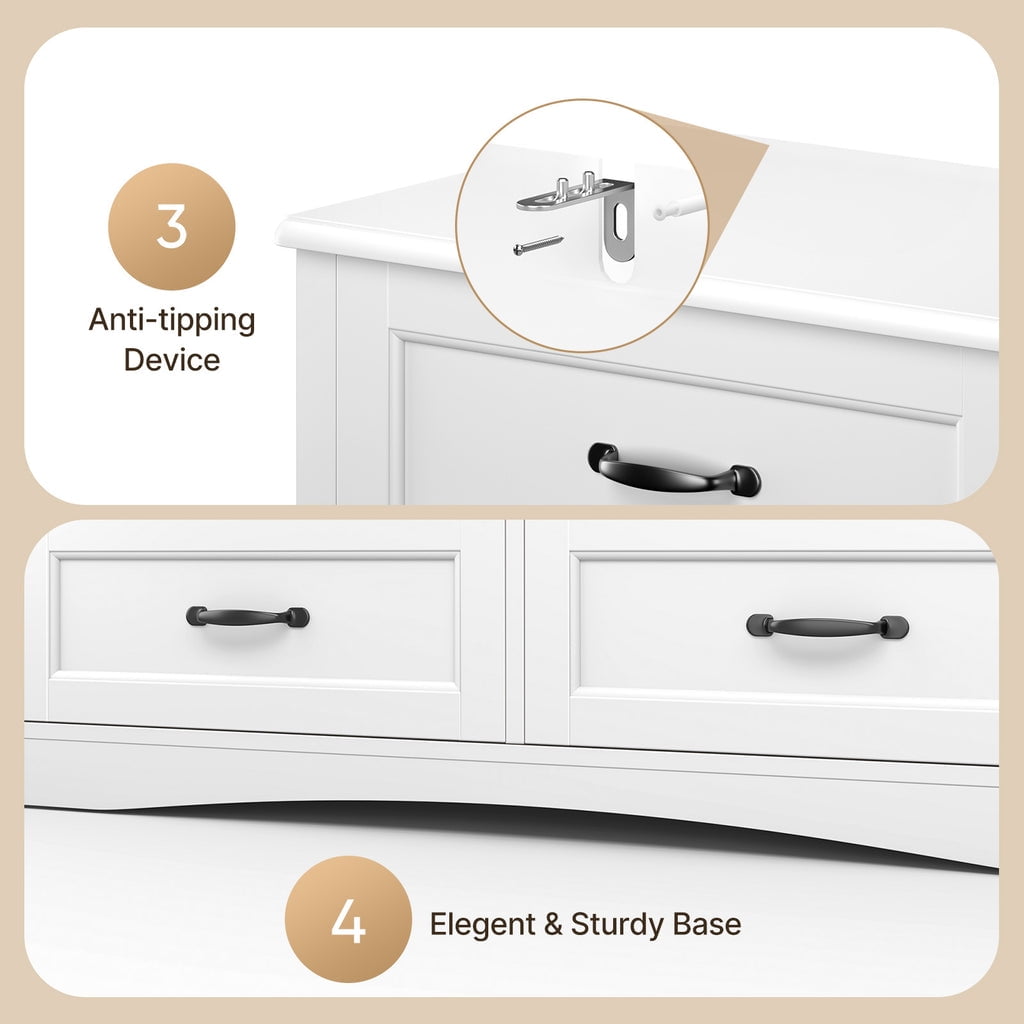 • 🗄️【STYLISH MODERN DESIGN】- The 4 drawer dresser features a sleek, contemporary white finish that effortlessly complements any home decor. Each drawer is spacious and smooth, making it easily access toys, books and clothes, helping them develop good organizing habits.