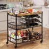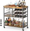 Aiho Mobile Kitchen Storage Trolley with Lockable Wheels and 12 Wine Racks for Entertainment in Kitchen, Living Room, Garden, Coffee Bar