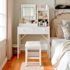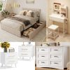Create a practical yet stylish bedroom space with the 5-piece bedroom furniture set, which includes the Queen bed frame with drawers, two nightstands, double-wide six-drawer closet and vanity table set. Each piece of furniture combines modern aesthetics