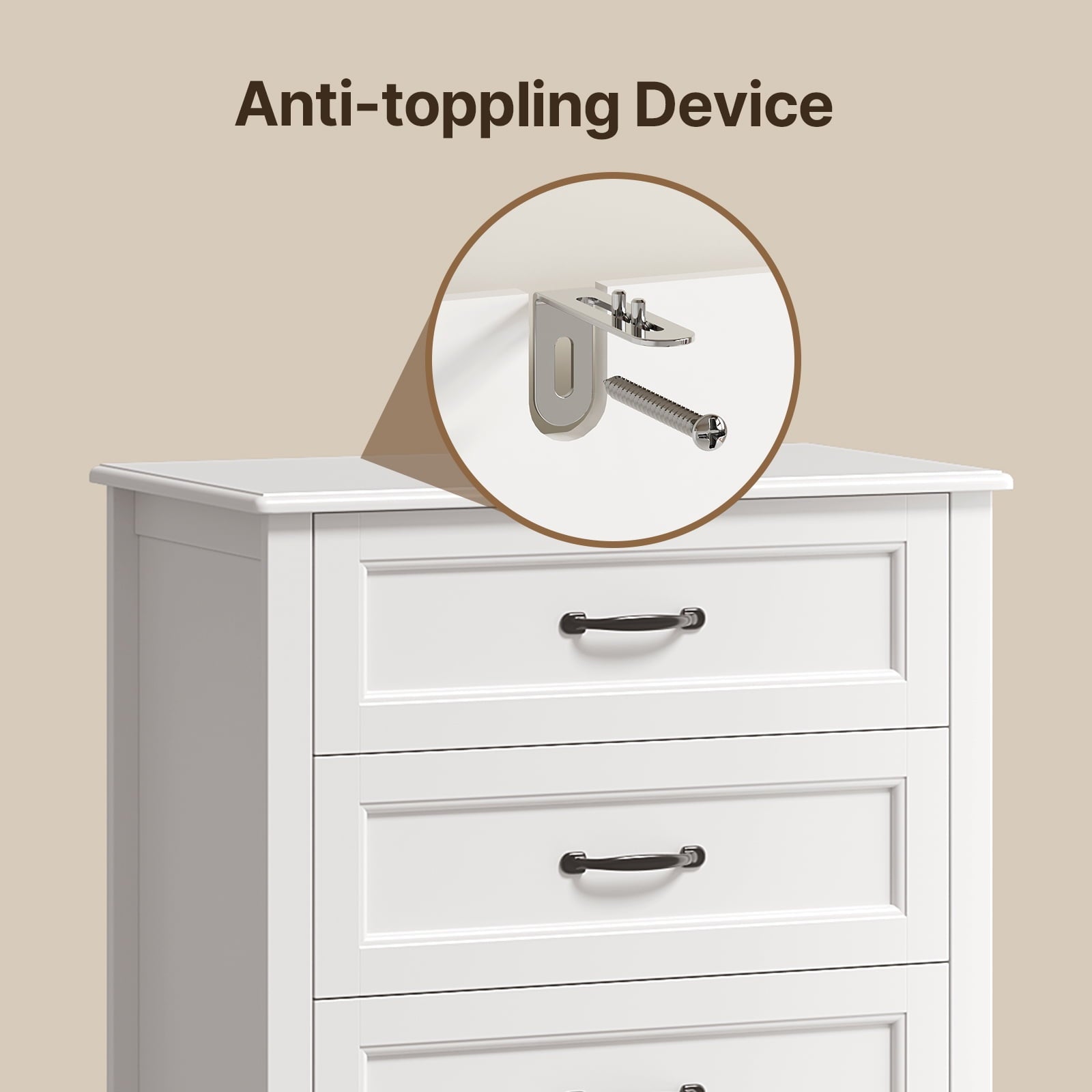 - Crafted from sturdy wood with reinforced corners and metal glide tracks. Includes anti-tipping kit for child/pet safety. Holds up to 50 lbs on top (ideal as a TV stand!).