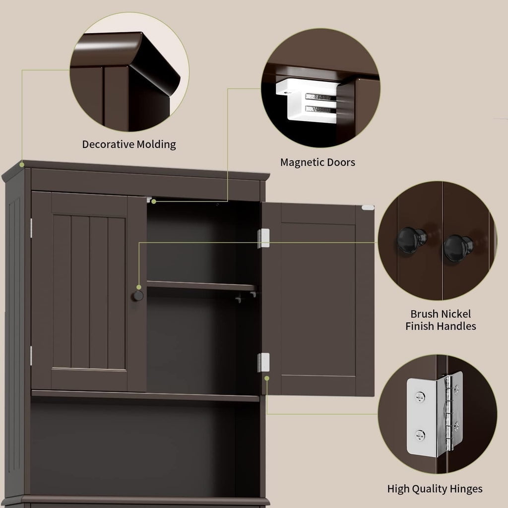• 🗄️【STURDY AND DURABLE】- Crafted from high-quality MDF, this over the toilet cabinet for bathroom storage is coated with a waterproof and moisture-resistant finish, ensuring both lasting quality and protection