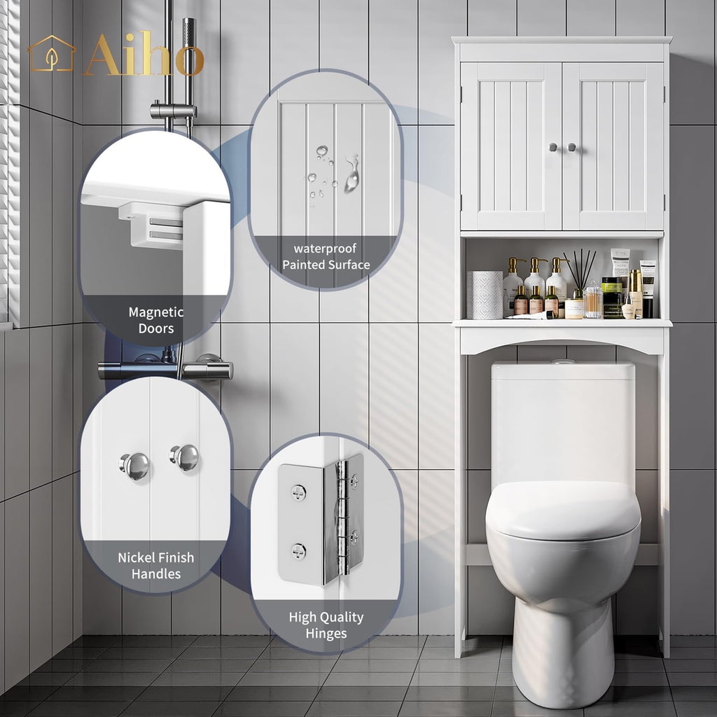 • Aiho over the Toilet Storage Cabinet with 1 Adjustable Shelf, Open Shelf and Double Doors