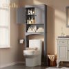 Home Cabinets Aiho 66.1″ over the Toilet Storage Cabinet with Adjustable Shelf and Open Storage Shelf, Freestanding – White