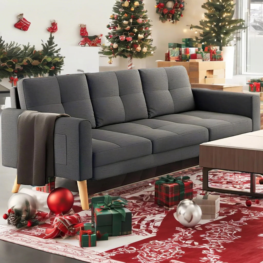 storage pockets of the sofa make it convenient to store essentials like remote controls and phones, helping you easily manage daily items. Available in deep gray or light gray colors to suit different home decor styles. The couch also comes with comfortable